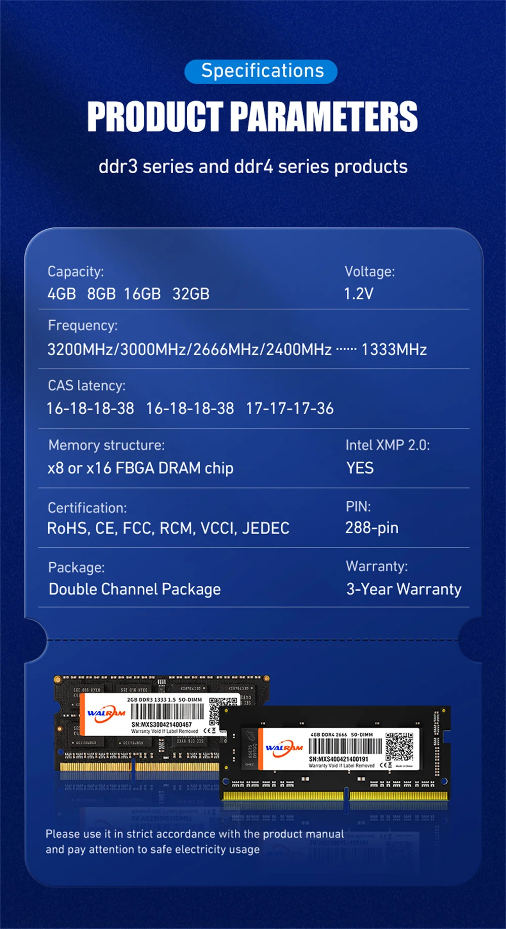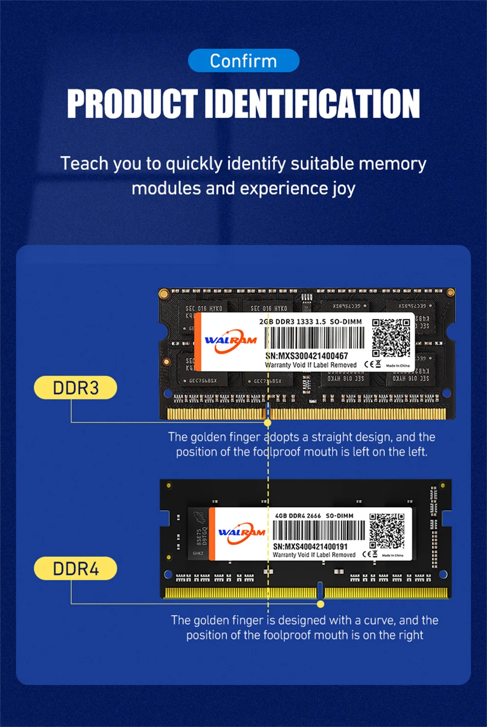 Walram Memoria RAM DDR4 8GB 16GB 2666 3200 portátil Sodimm memoria interna RAM DDR4 2666MHz 3200MHz 2400 2133 1,2V para portátil