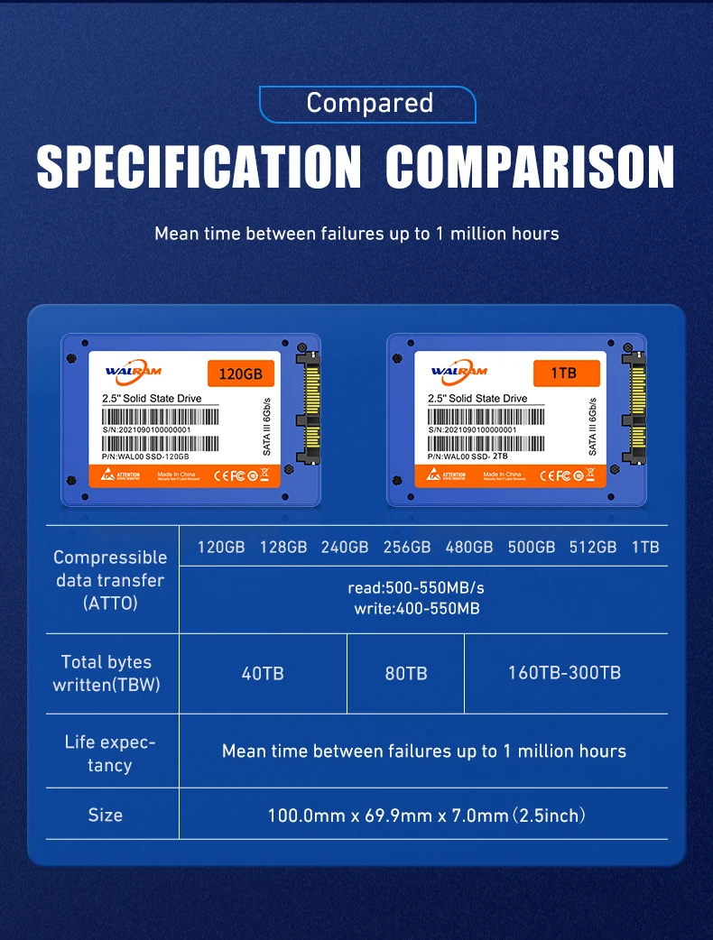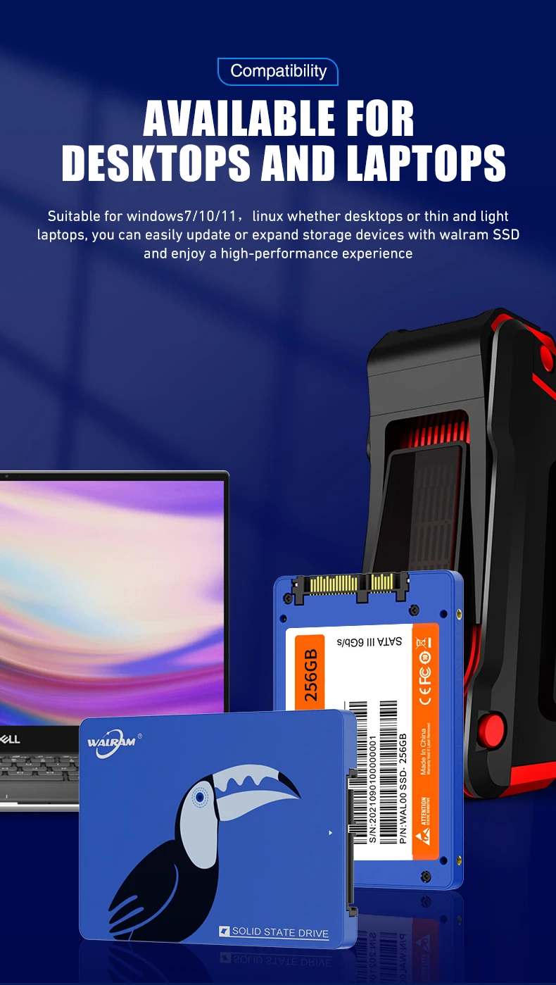 • Tipo de bus SATA III:Con el tipo de bus SATA III, El WALRAM SSD puede transferir datos a una velocidad más rápida, lo que hace que las transferencias de archivos y los tiempos de arranque sean más rápidos.