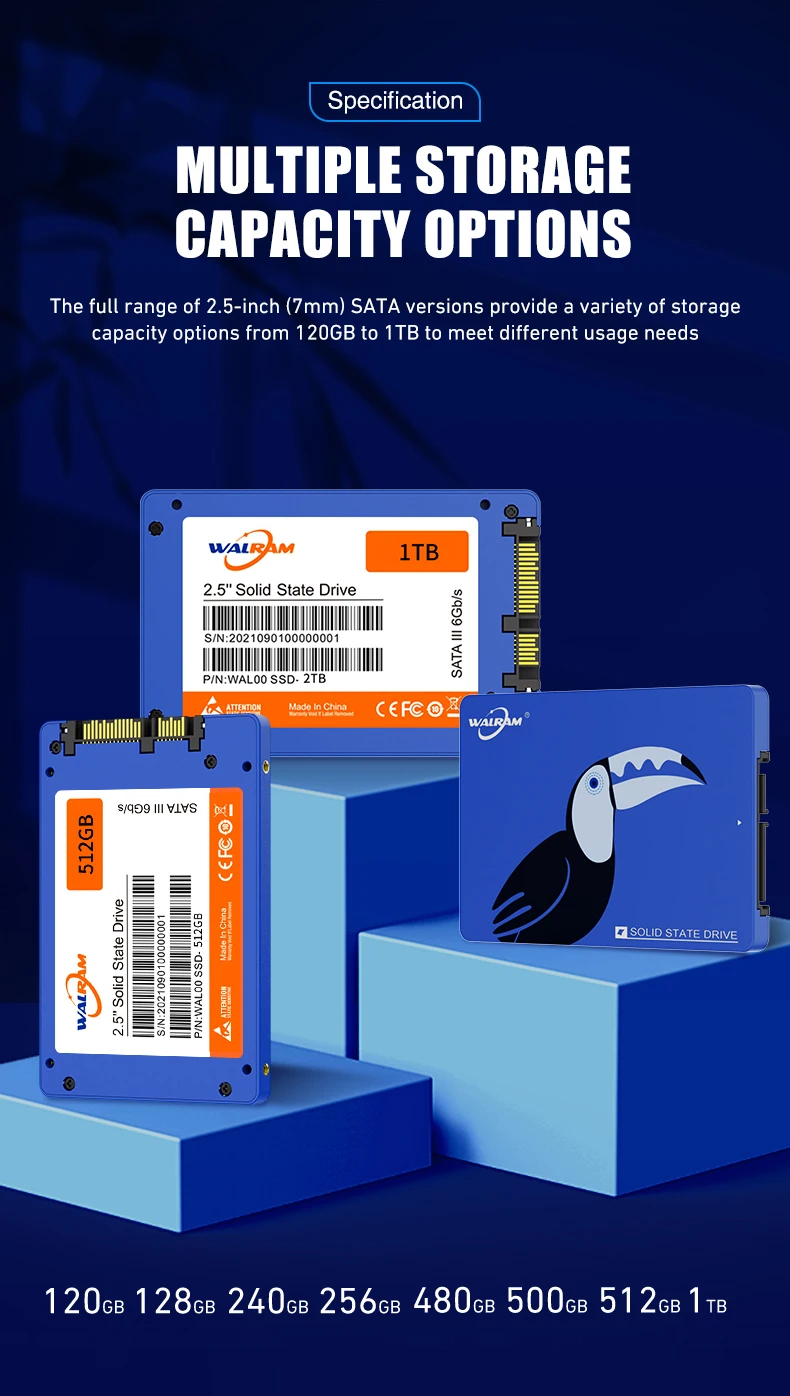 Walram SSD 1TB SATA3 2,5 pulgadas SSD 512GB 120GB 128GB 240GB 256GB 500GB 480GB SSD para PC portátil Unidad de estado sólido interna