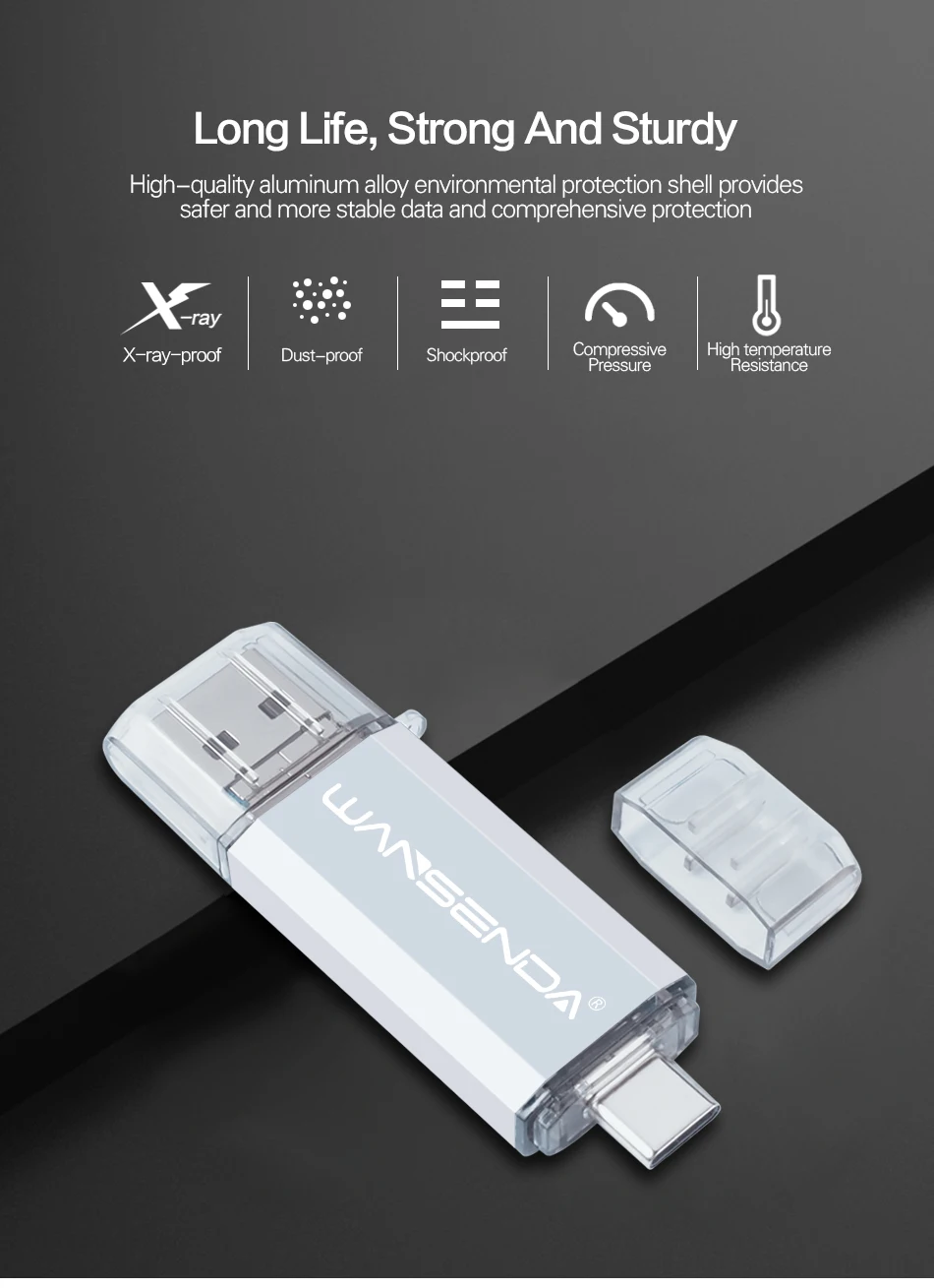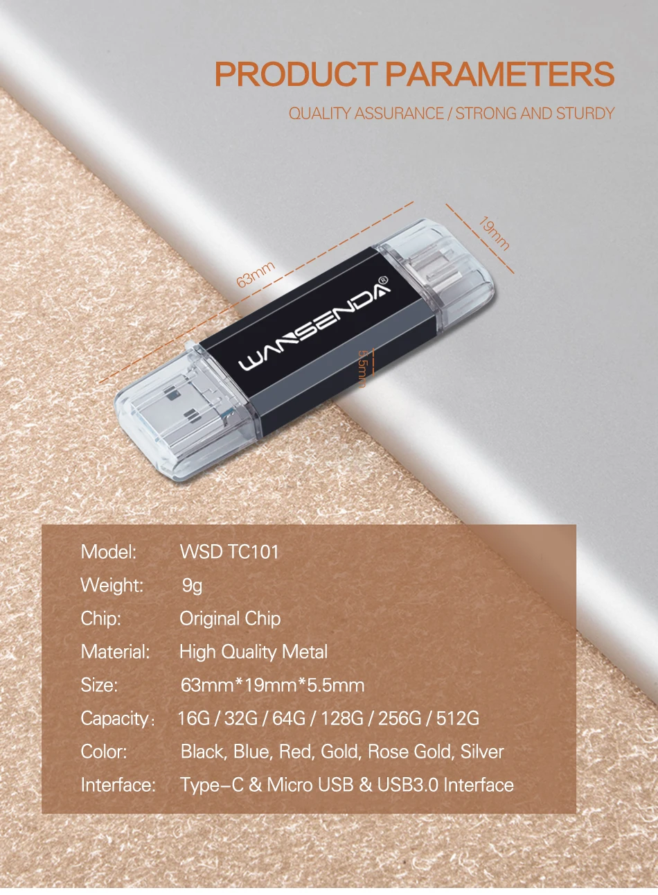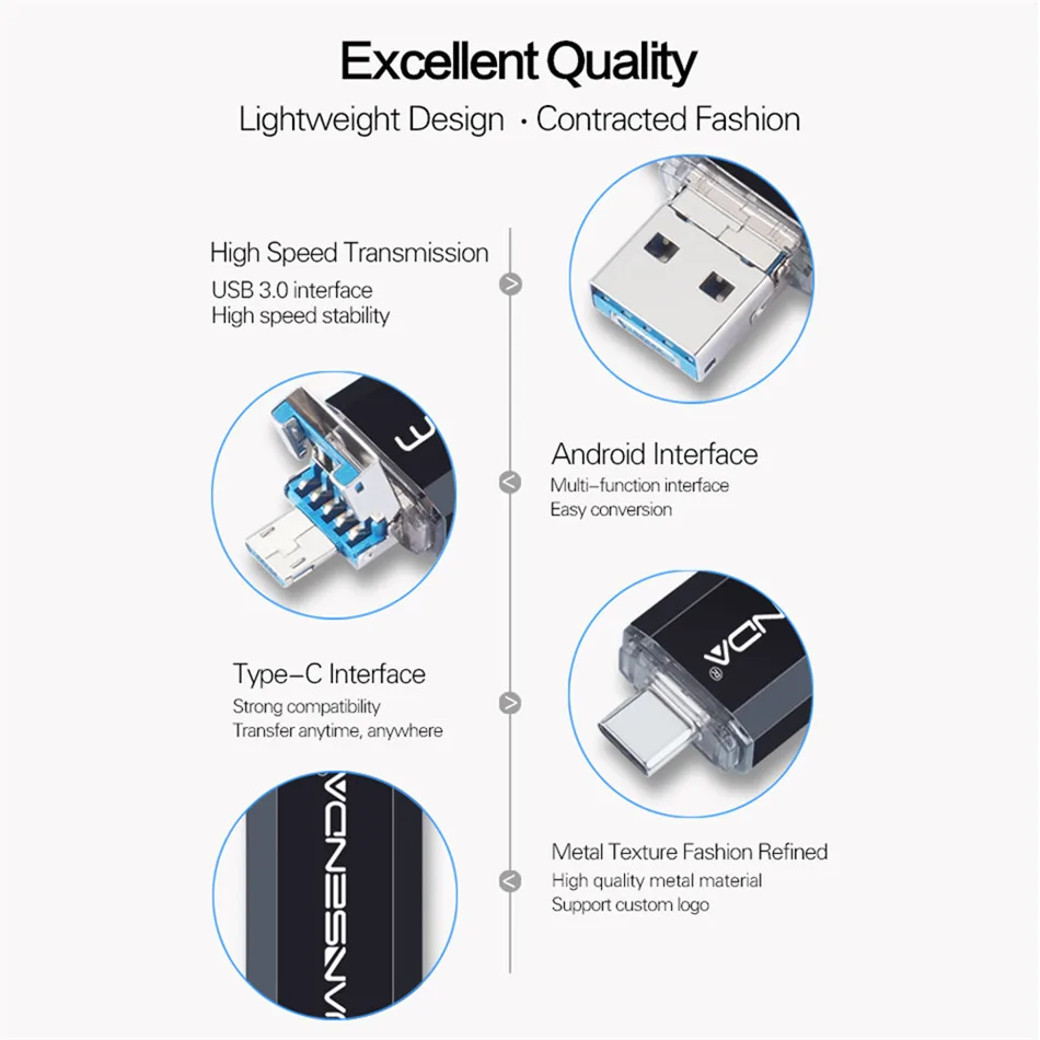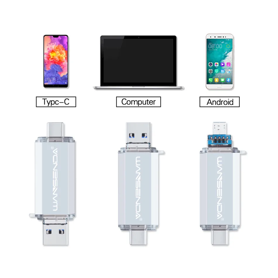 WANSENDA Unidad flash USB 3.0 OTG 3 en 1 / USB TIPO C / Unidad de bolígrafo Micro USB 32 GB USB Stick 3.0 64 GB 128 GB 256 GB 512 GB Unidad de alta velocidad