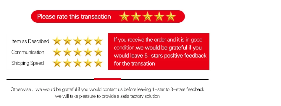 Nos gustaría ganarnos suLos comentarios positivos de 5 estrellas.Tu comentario es muy importante para nosotros. No abras una disputa con nosotros.