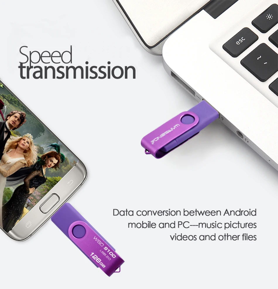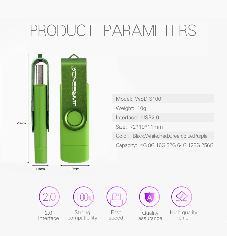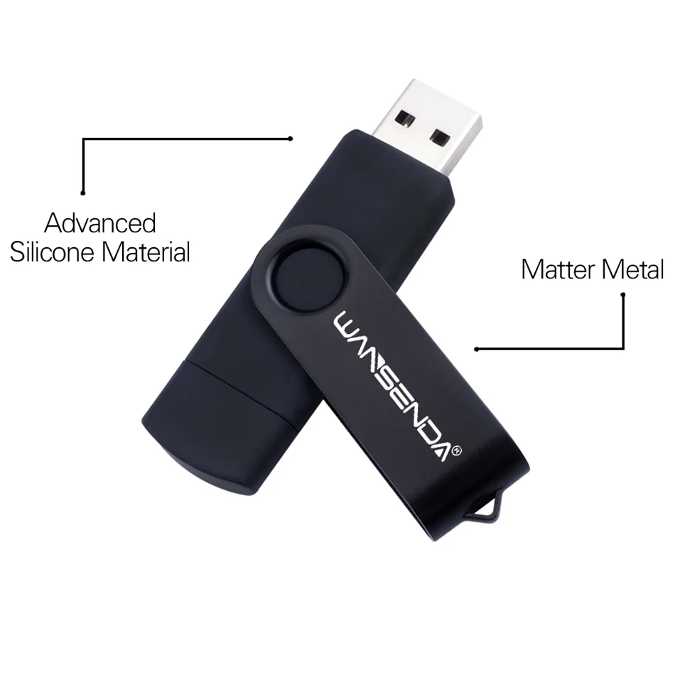 WANSENDA OTG 2 en 1 Unidad flash USB 2.0 y unidad de bolígrafo MicroUSB 8GB 16GB 32GB 64GB 128GB 256GB Tarjeta de memoria de rotación U Disk