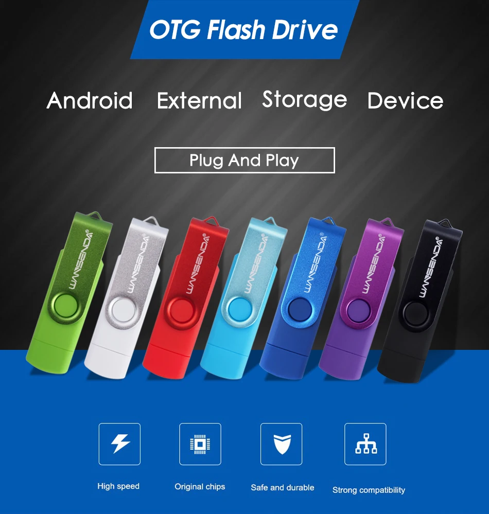 Comprar WANSENDA OTG 2 en 1 unidad Flash USB 2,0 y unidad de bolígrafo MicroUSB 8GB 16GB 32GB 64GB 128GB 256GB memoria giratoria U Disk