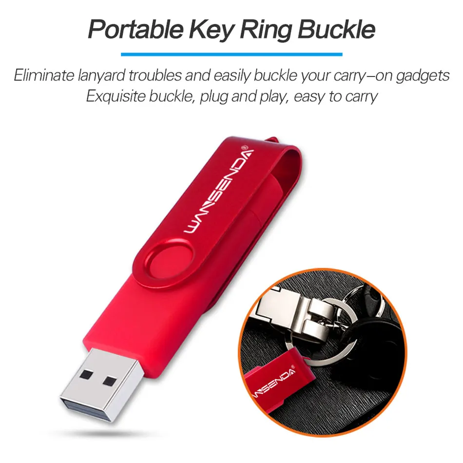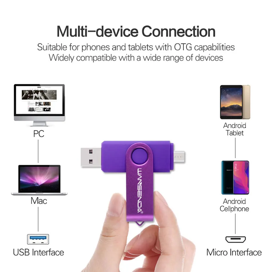 WANSENDA OTG 2 en 1 Unidad flash USB 2.0 y unidad de bolígrafo MicroUSB 8GB 16GB 32GB 64GB 128GB 256GB Tarjeta de memoria de rotación U Disk