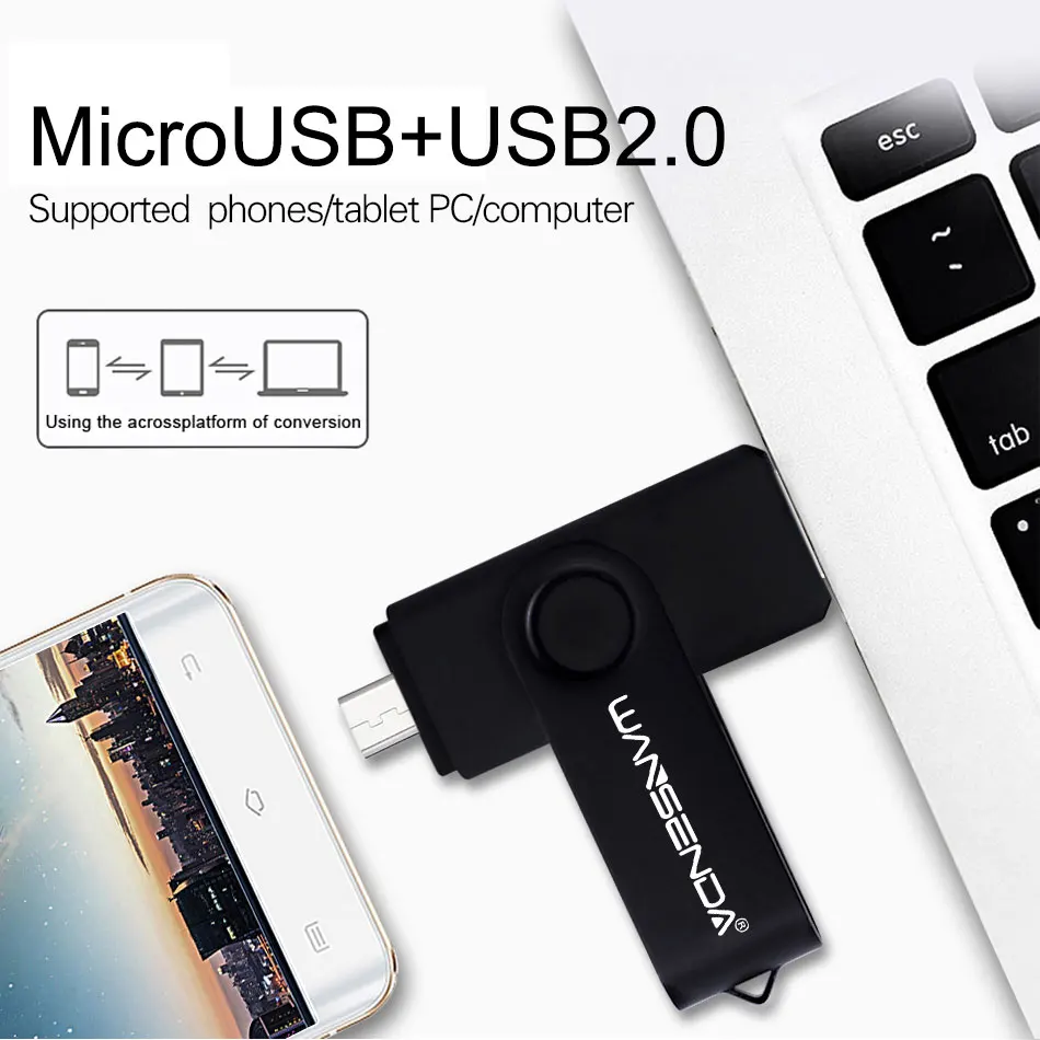 Comprar WANSENDA OTG 2 en 1 unidad Flash USB 2,0 y unidad de bolígrafo MicroUSB 8GB 16GB 32GB 64GB 128GB 256GB memoria giratoria U Disk