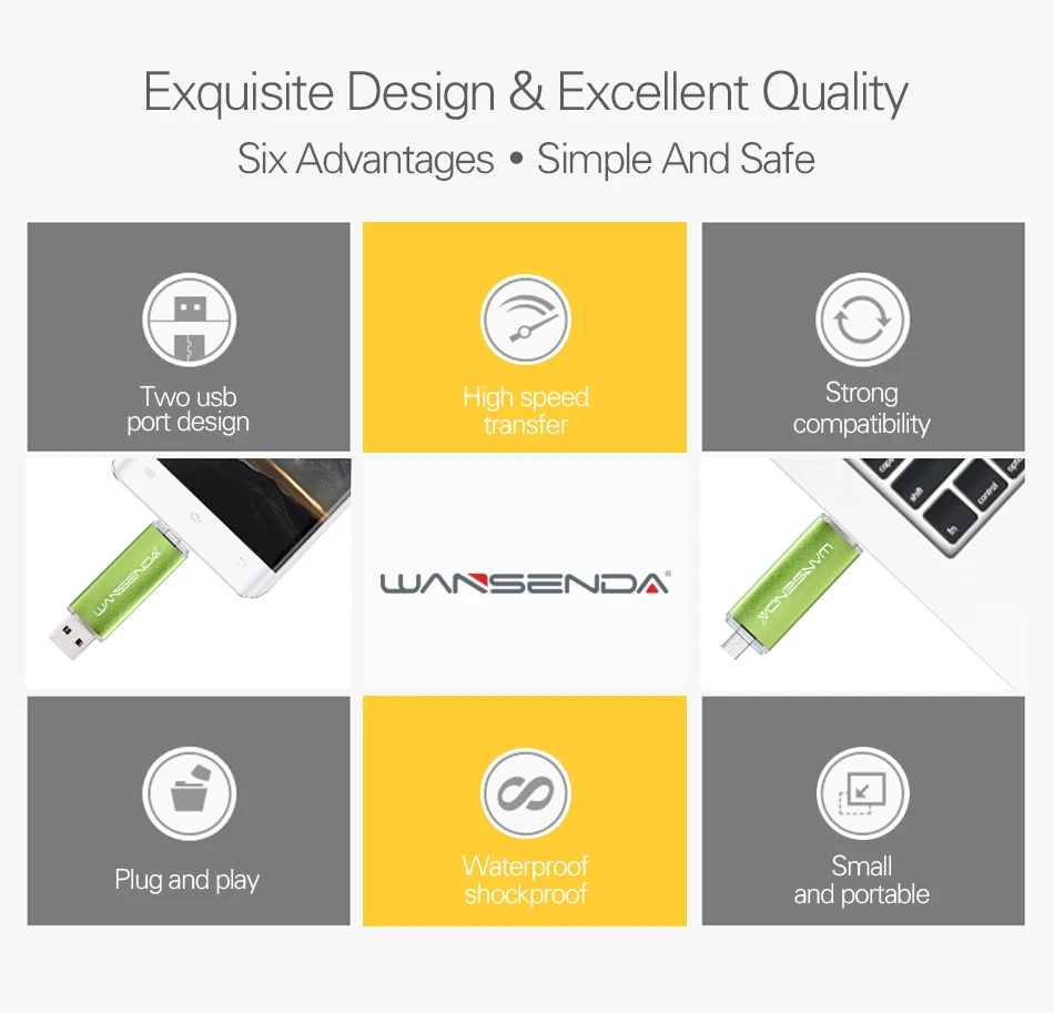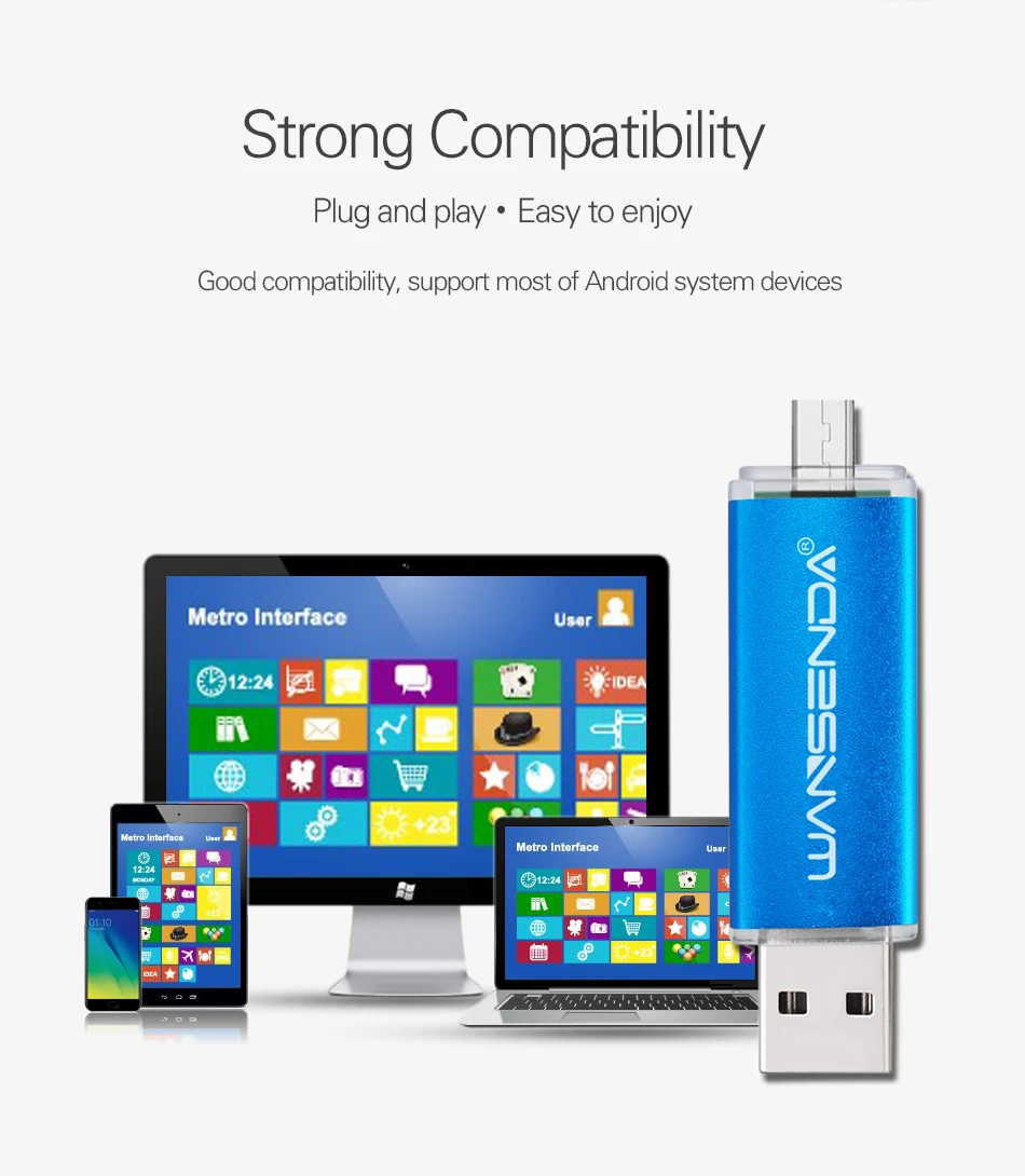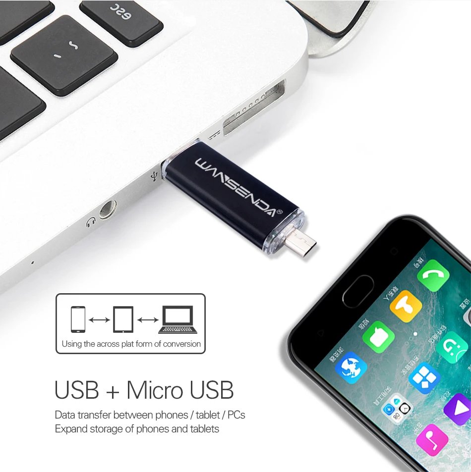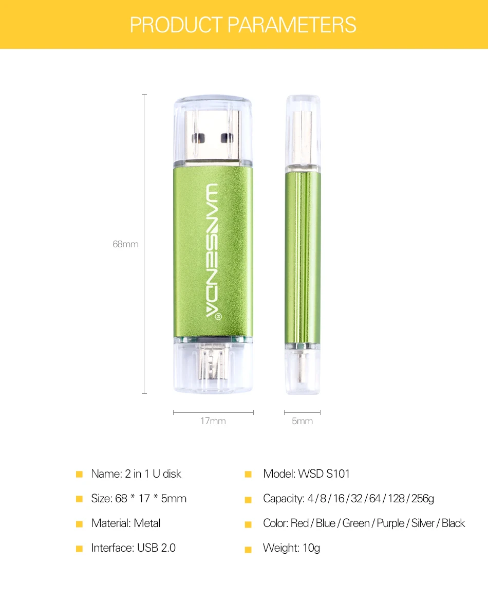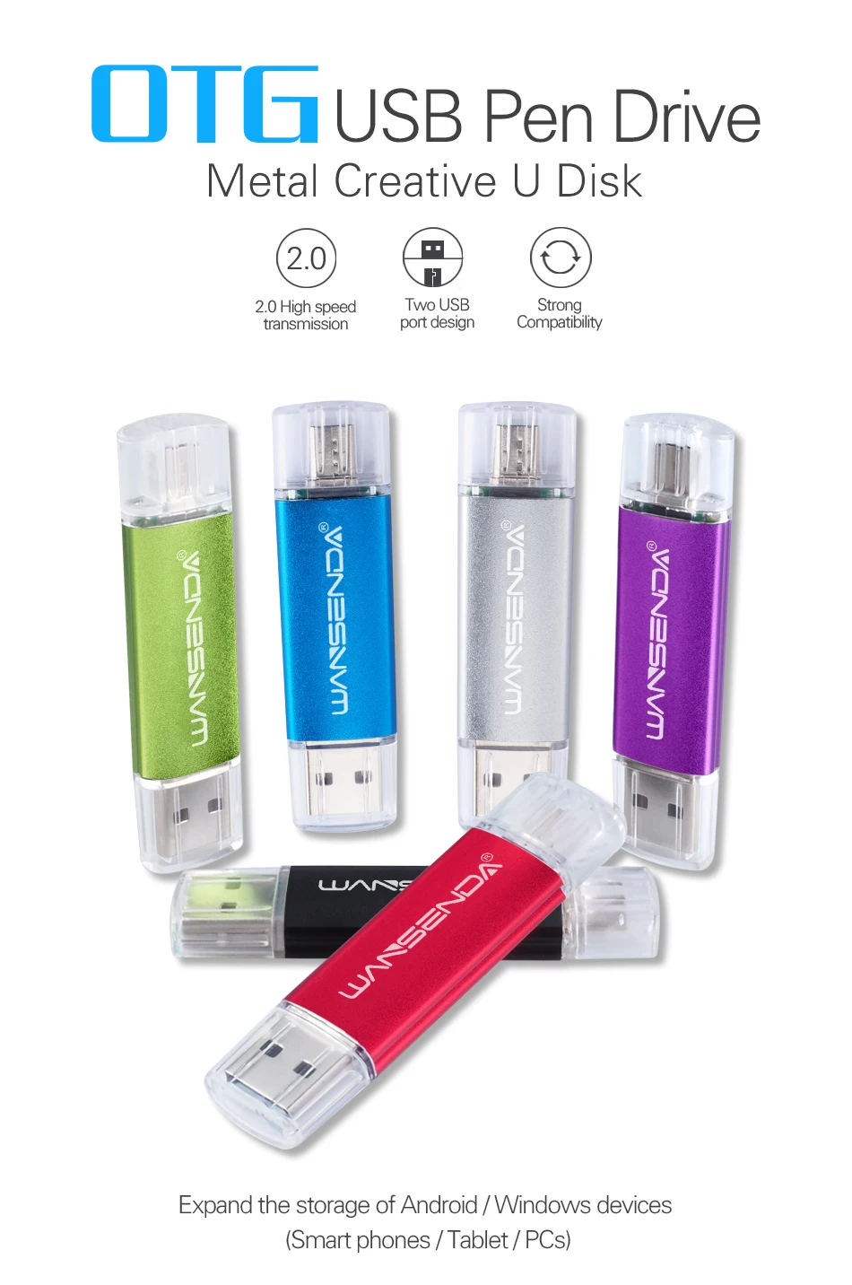 WANSENDA USB Flash Drive 2-in-1 USB 2.0 & Micro USB OTG Pen Drive 256GB 128GB 64GB 32GB 16GB Pendrive USB Memory Stick