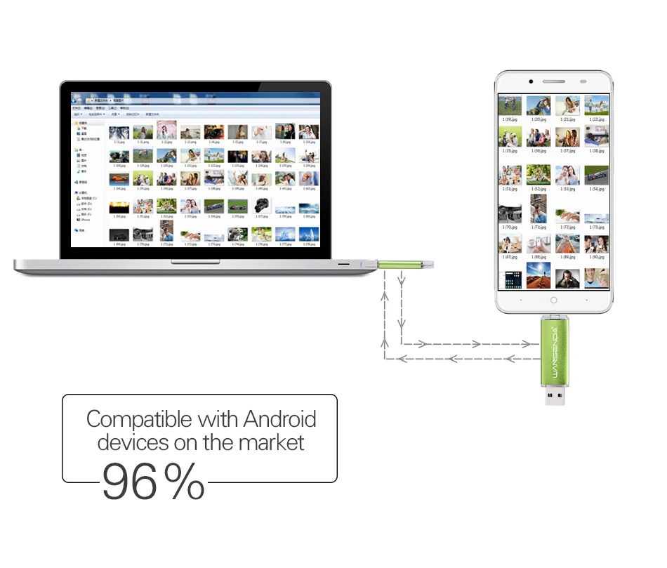3. 2-in-1 design with a Micro usb and USB 2.0 connector,easy for data transmission between smart phone and computers.