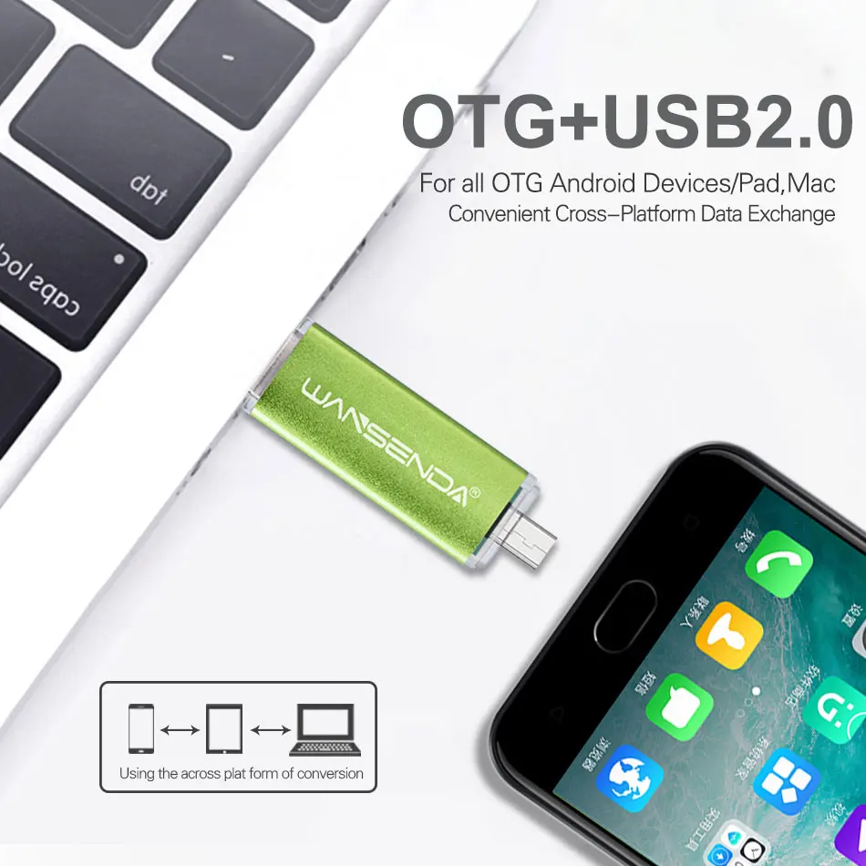 WANSENDA USB Flash Drive 2-in-1 USB 2.0 & Micro USB OTG Pen Drive 256GB 128GB 64GB 32GB 16GB Pendrive USB Memory Stick