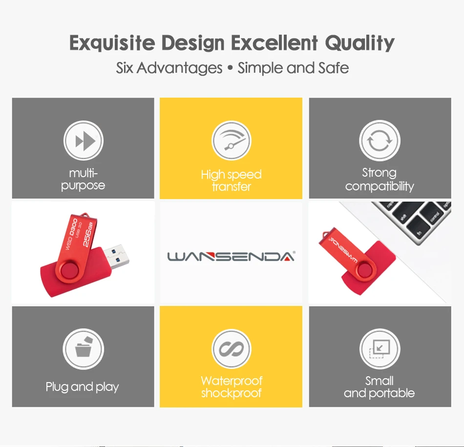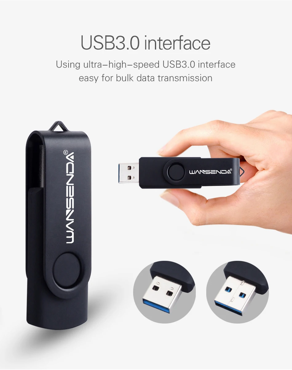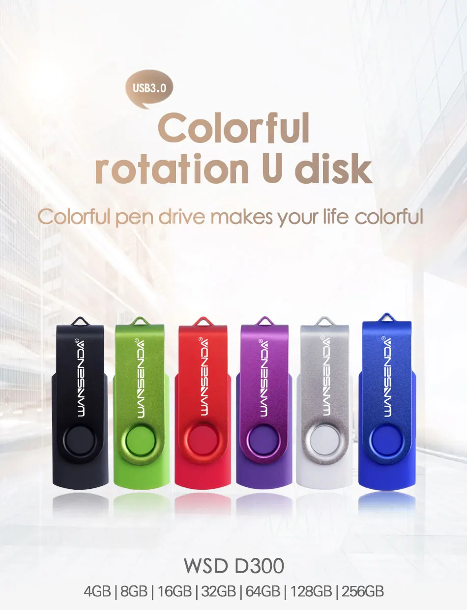 Comprar WANSENDA-unidad Flash USB 3,0 de Metal, memoria Flash con rotación de 128GB, 8GB, 16GB, 64GB, 256GB, 32GB