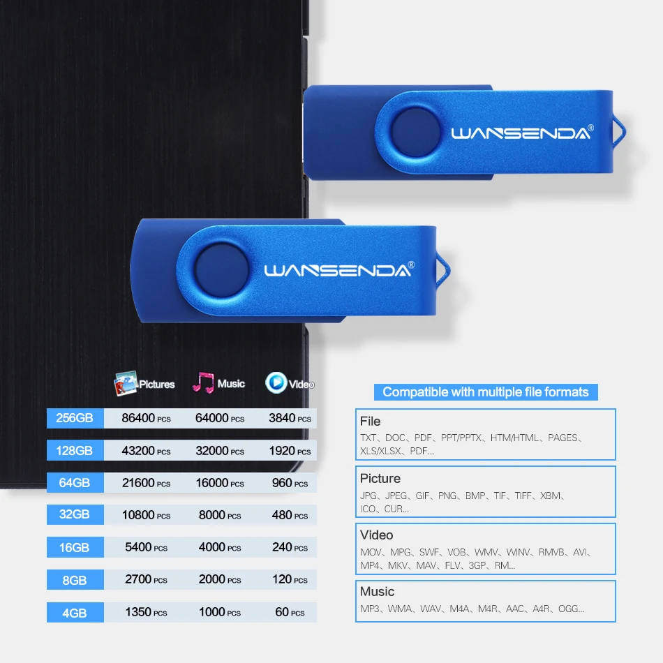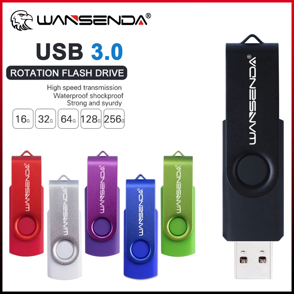 Comprar WANSENDA-unidad Flash USB 3,0 de Metal, memoria Flash con rotación de 128GB, 8GB, 16GB, 64GB, 256GB, 32GB