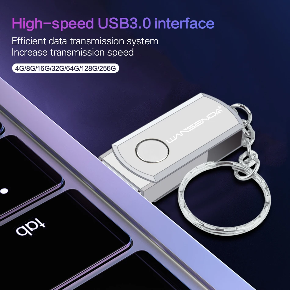 WANSENDA USB 3,0 USB Flash Drive llavero Pen Drive 128GB Flash Drive 8GB 16GB 32GB 64GB 256GB Pendrive rotación USB Memory Stick