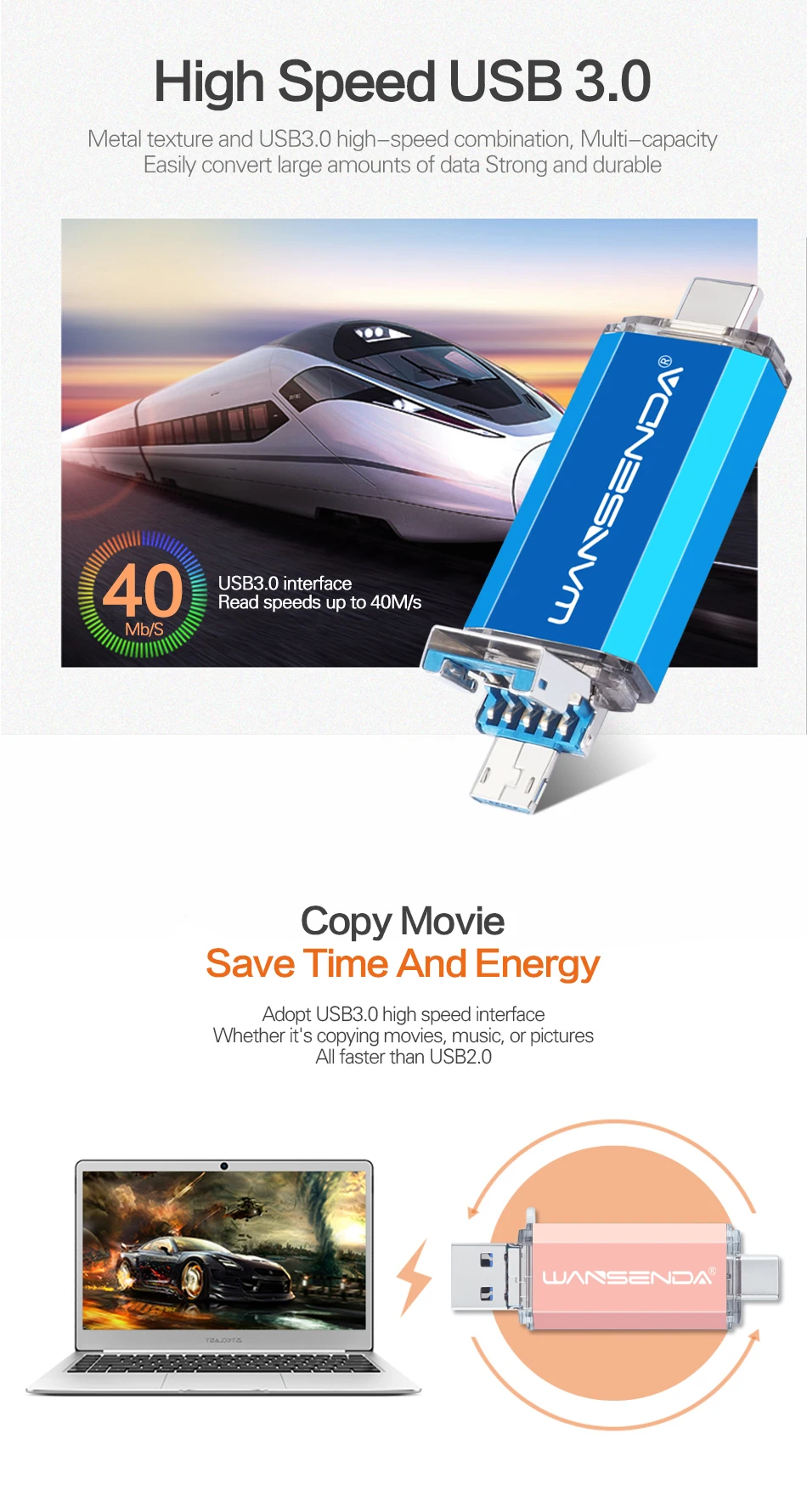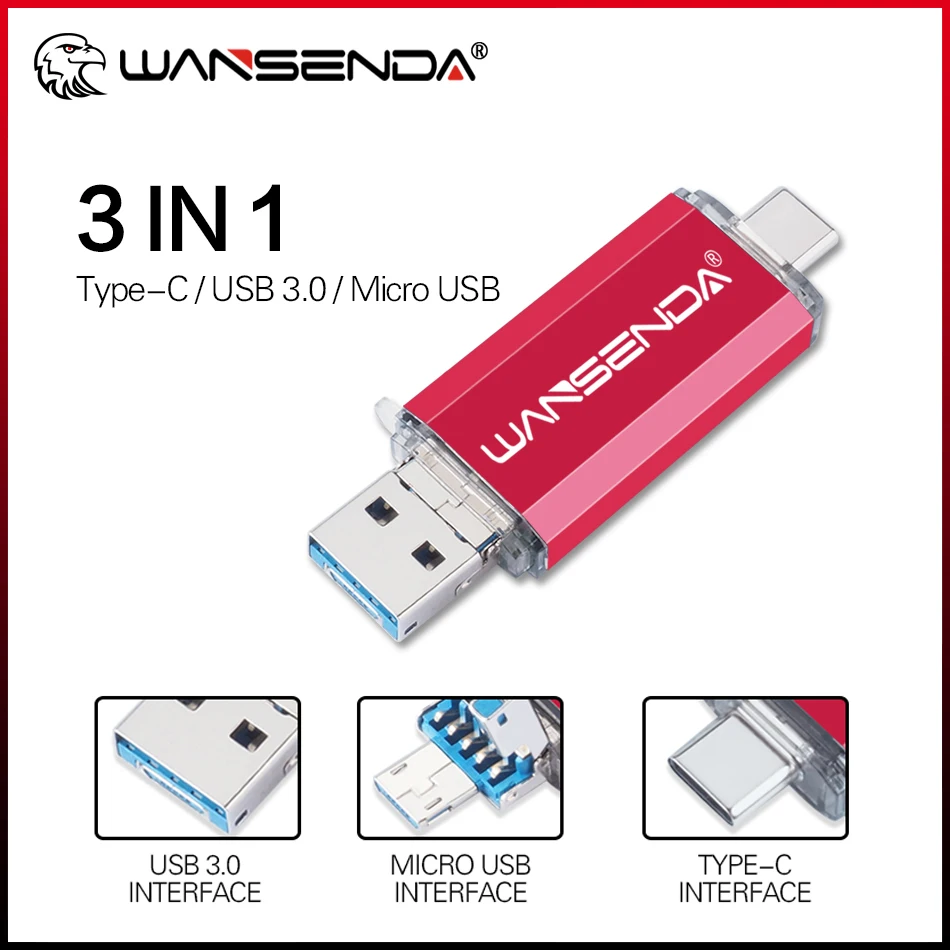 Comprar WANSENDA-unidad Flash USB 3,0 tipo C, MicroUSB, 32GB, 64GB, 128GB, 256GB, 512GB, alta velocidad, OTG