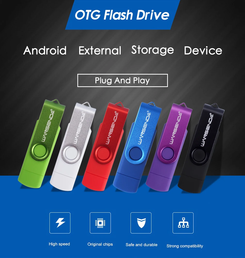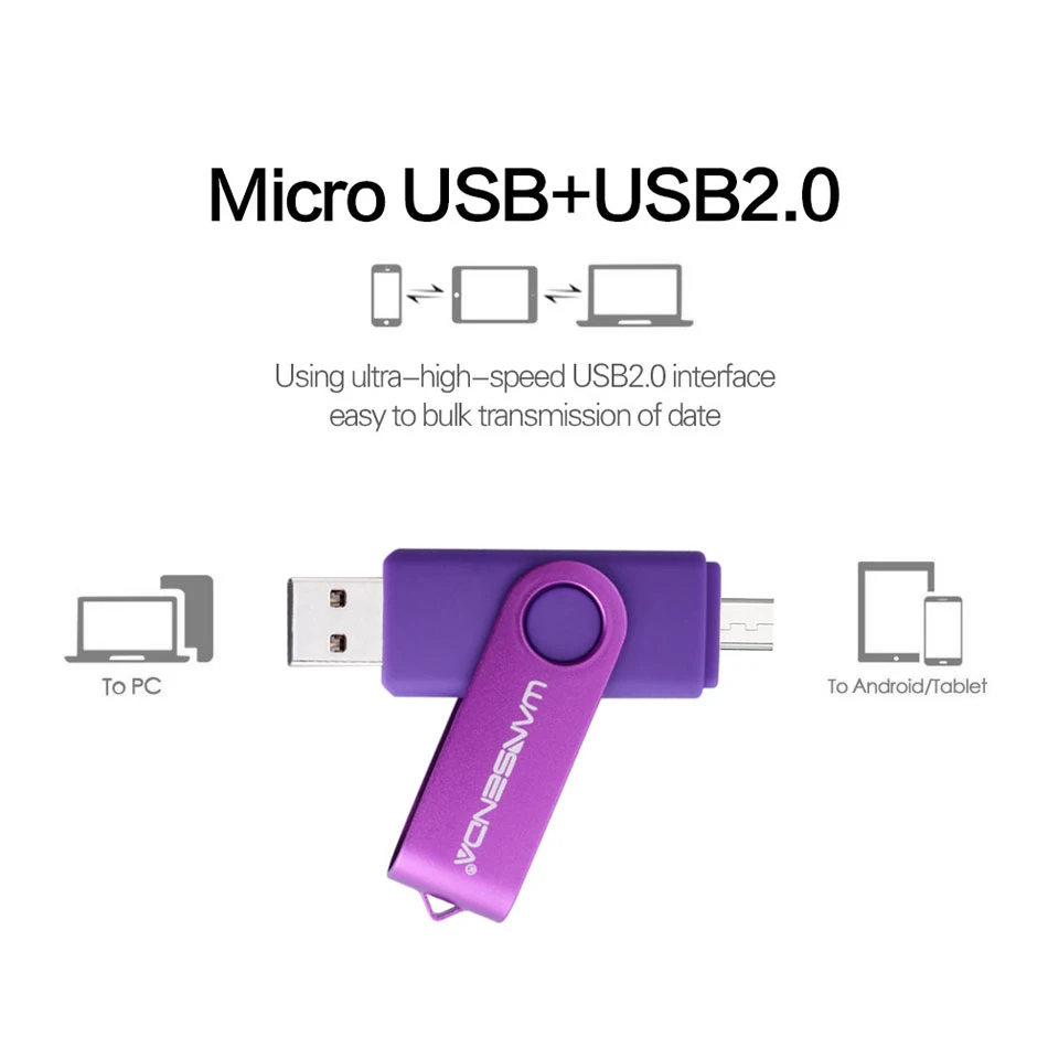 Comprar WANSENDA-unidad Flash USB OTG, Pendrive de 128GB, 64GB, NicroUSB 2,0, 32GB, 16GB, 8GB, 2 en 1 unidad Dual Android para Micro/PC