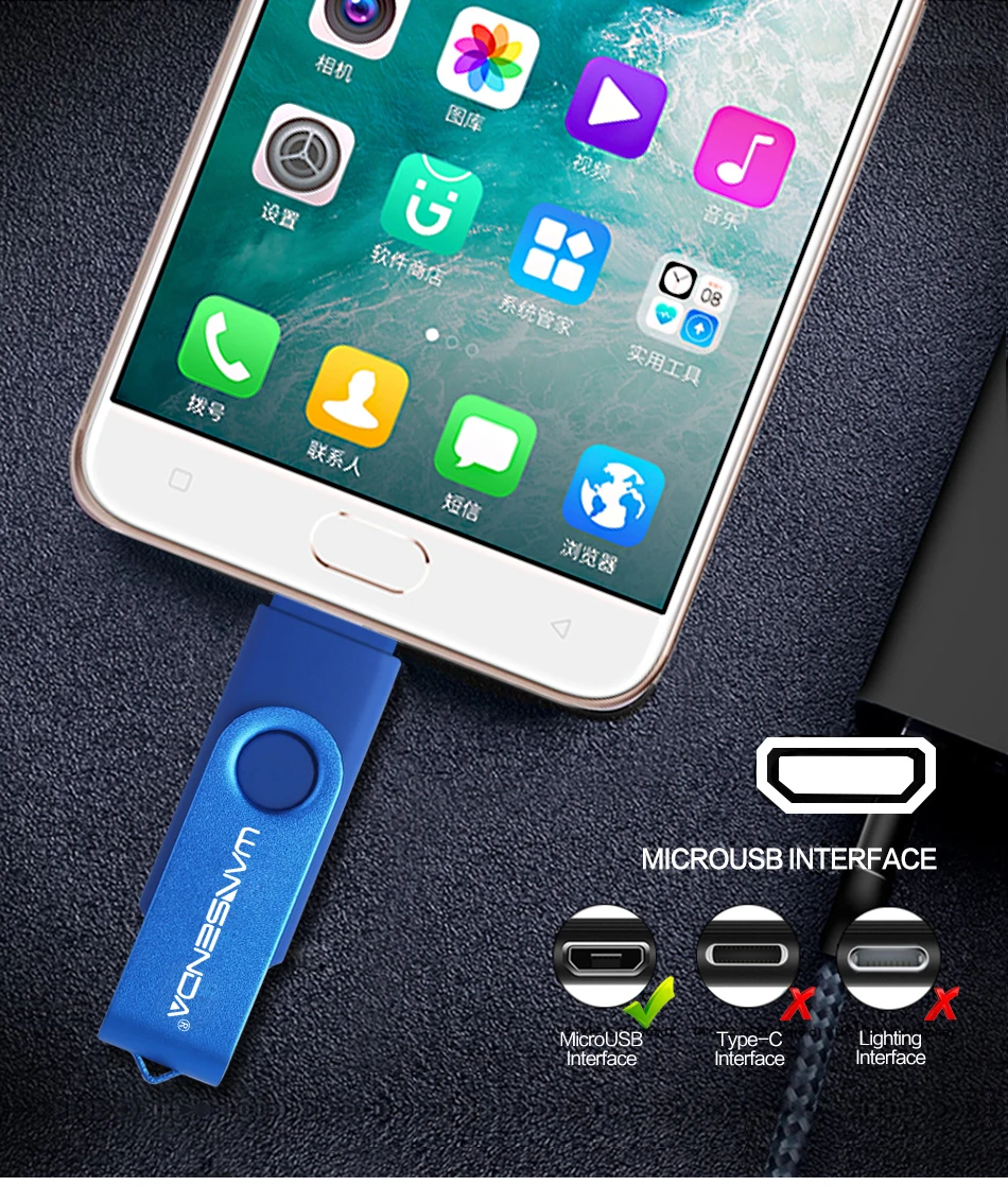 WANSENDA USB Flash Drive OTG Pendrive 128GB 64GB NicroUSB Stick 2,0 32GB 16GB 8GB 2 en 1 Dual Drive para Micro Android /PC