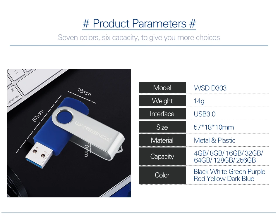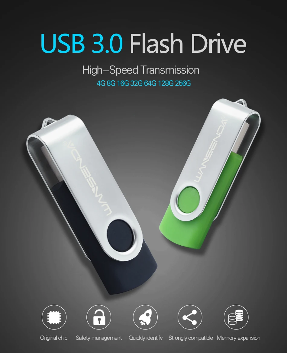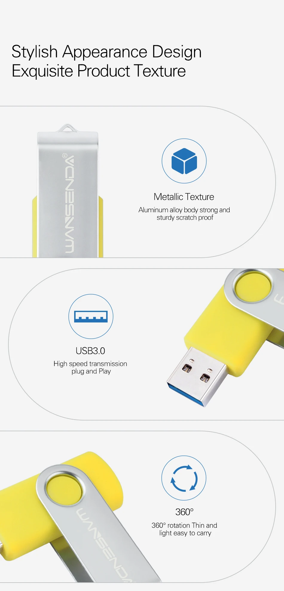 Comprar WANSENDA-unidad Flash USB de rotación, Pendrive de Metal de 32GB, 8GB, 16GB, 64GB, 128GB, 256GB, disco U 3,0