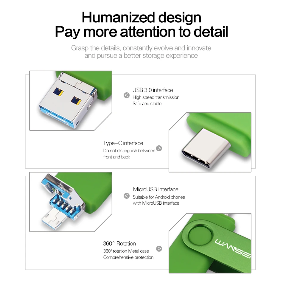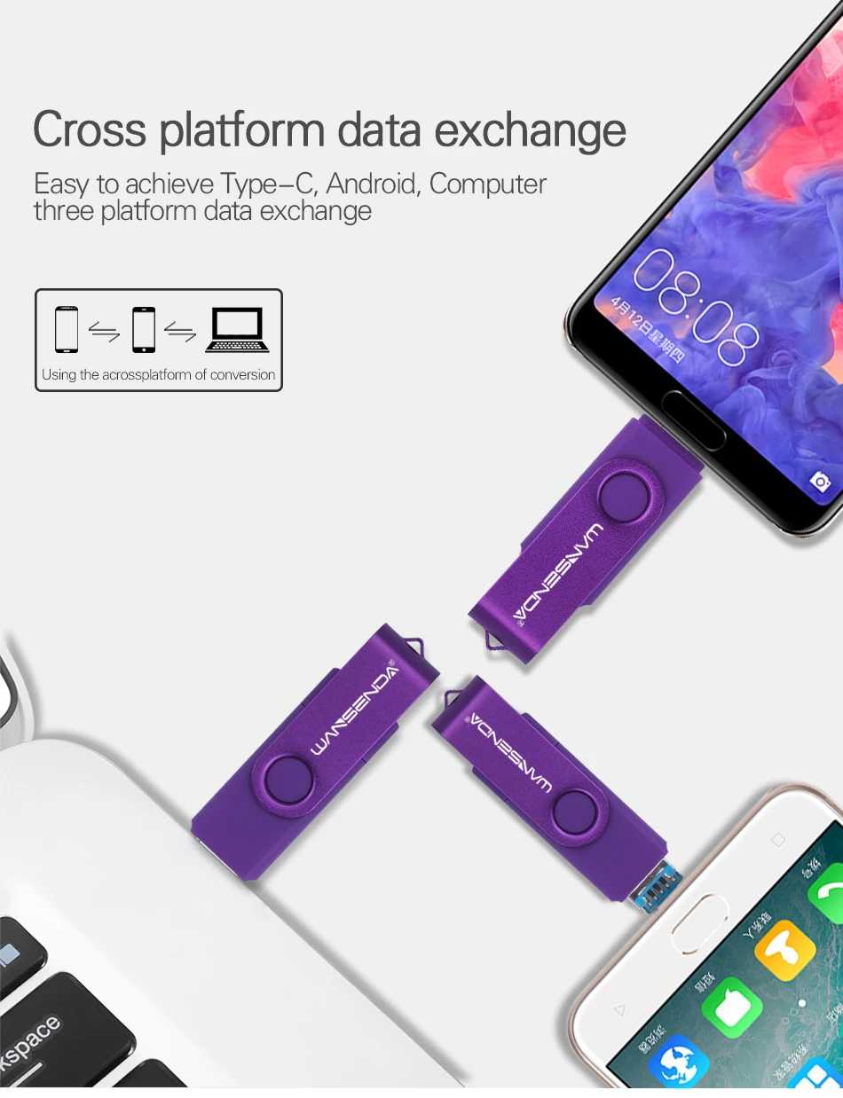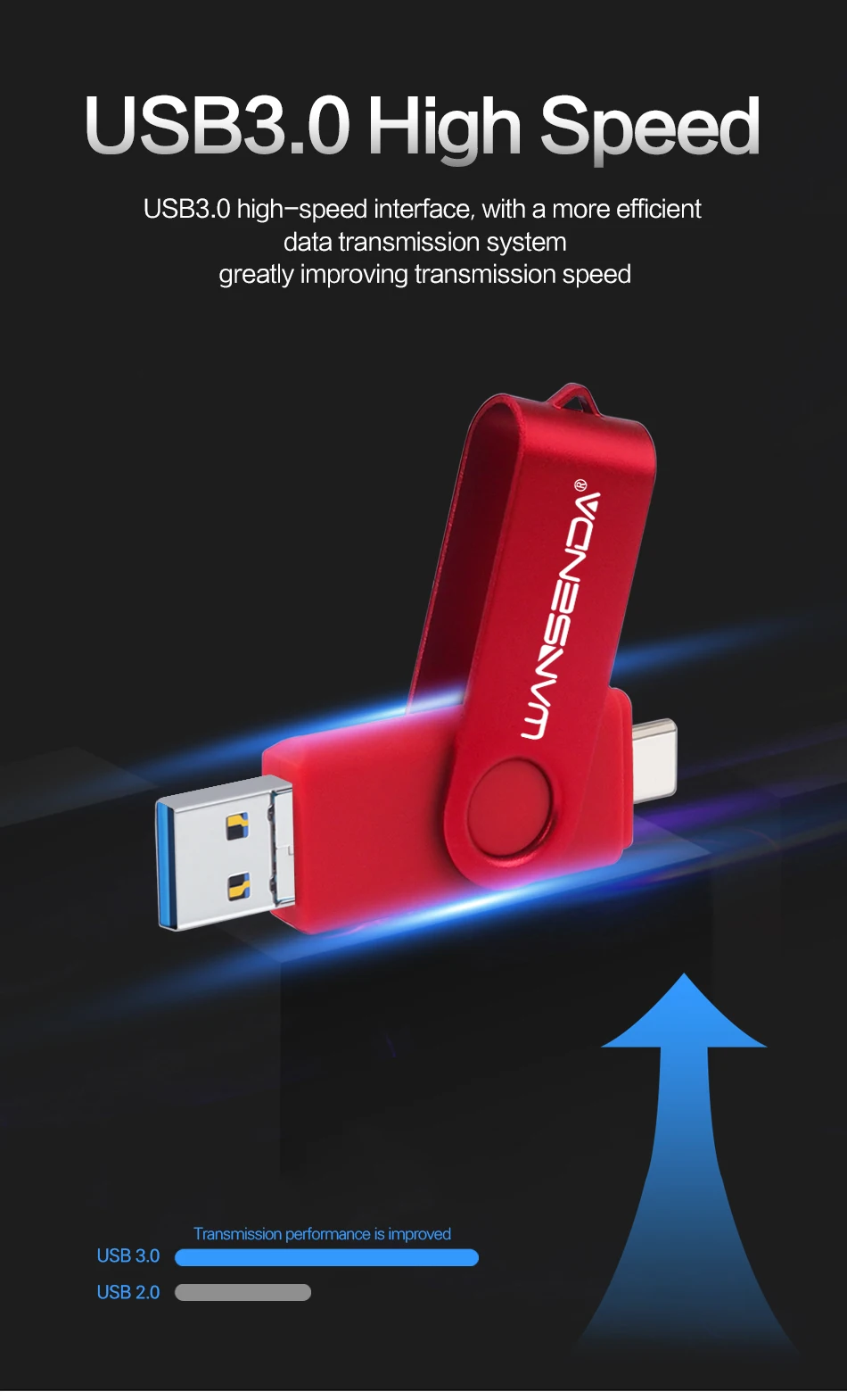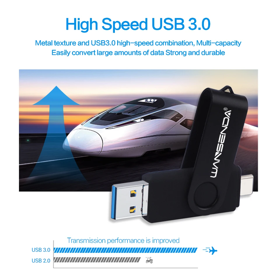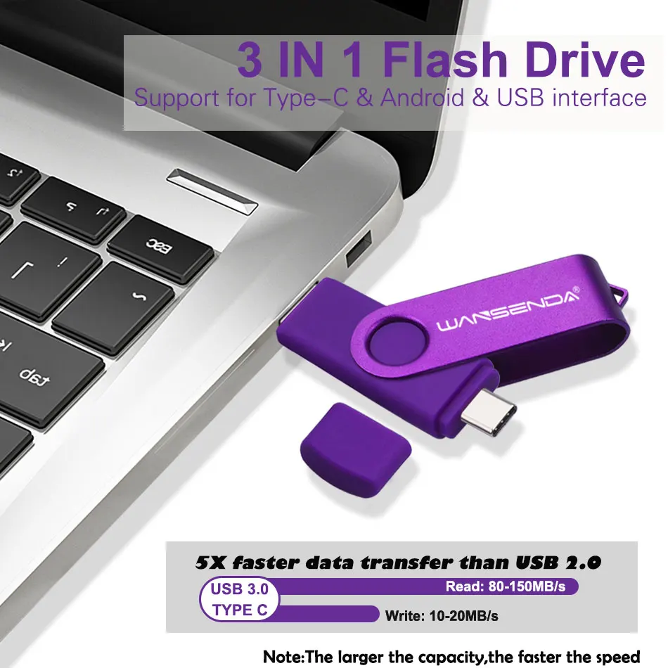 Comprar WANSENDA-unidad Flash USB tipo C 3,0, Pendrive de alta velocidad de 512GB, 256GB, 128GB, 64GB y 32GB
