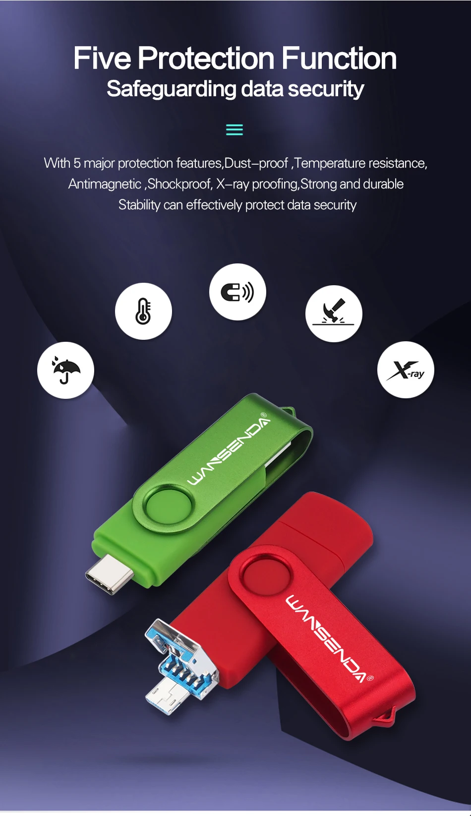 1. Solo es compatible con un teléfono inteligente Android 96%, algunos sistemas Redmi y MIUI no pueden reconocer la unidad flash USB.