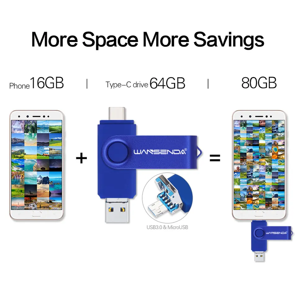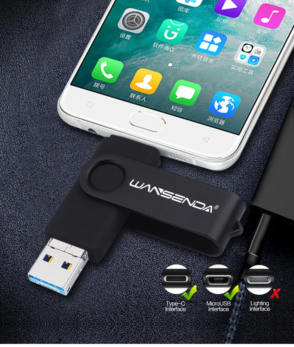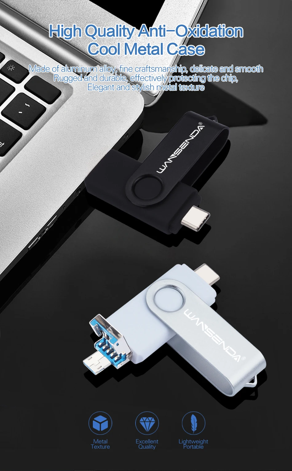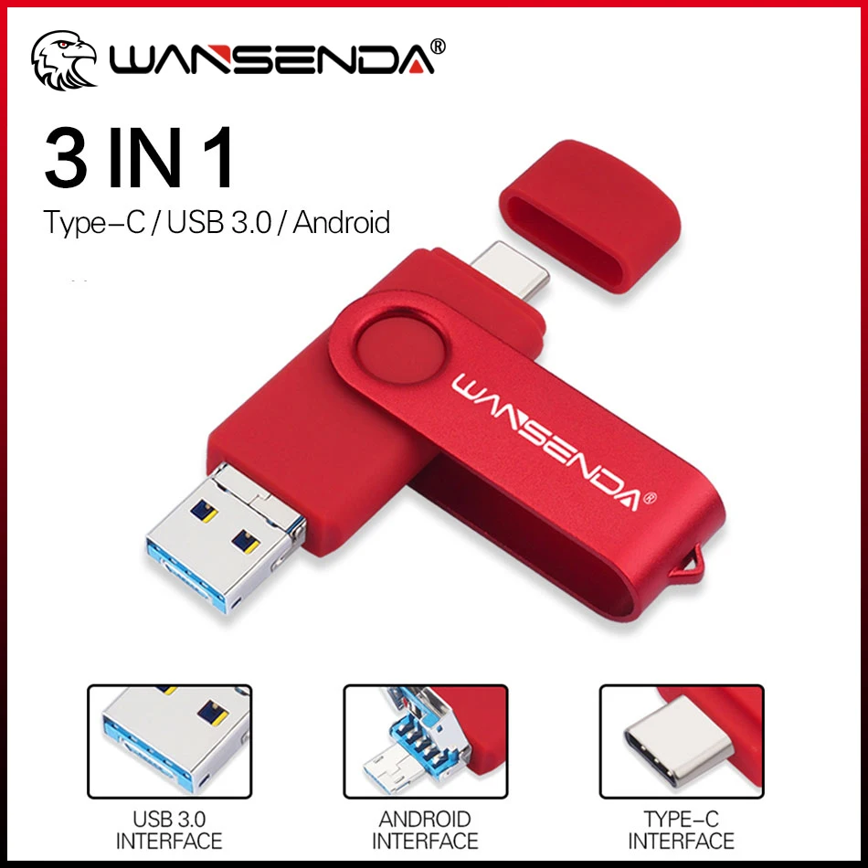 WANSENDA OTG USB Flash Drive USB 3,0 Tipo C Pen Drive 512GB 256GB 128GB 64GB 32GB 16GB Micro USB Stick de alta velocidad 3 en 1 Pendrives