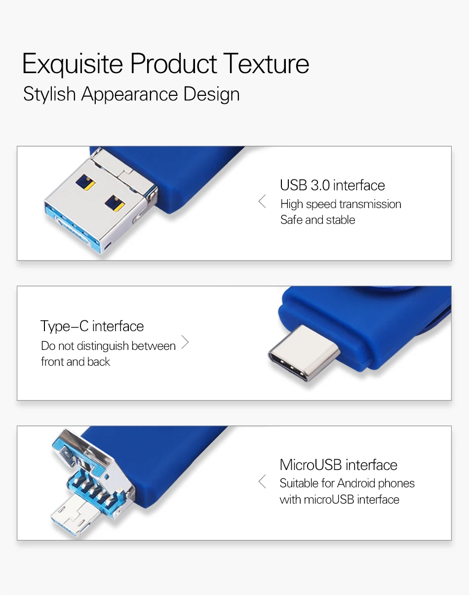 4. Diseño 3 en 1 con un puerto tipo C, Puerto micro USB y conector USB 3,0, fácil para la transmisión de datos entre Smartphone y ordenadores.