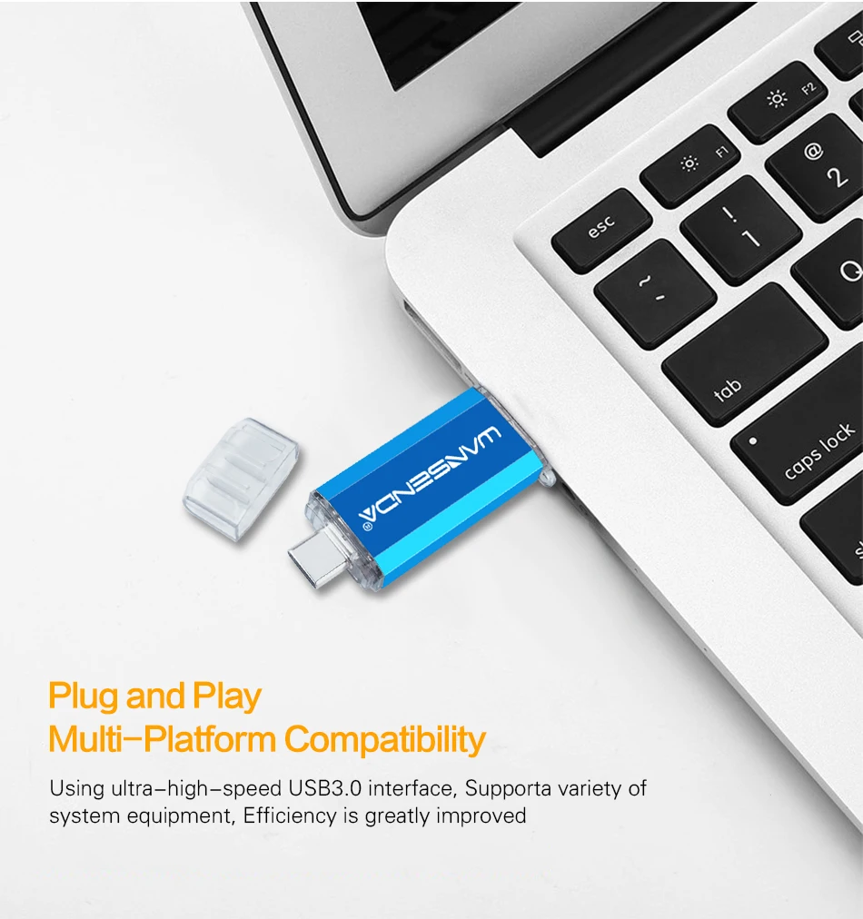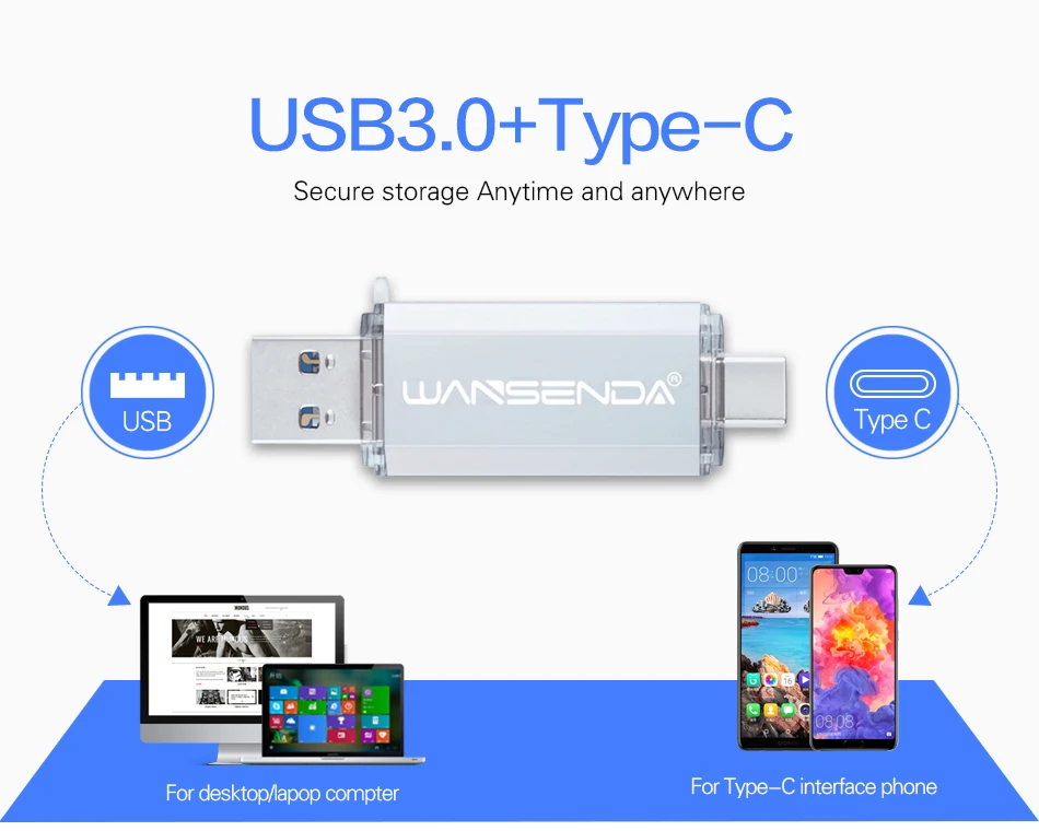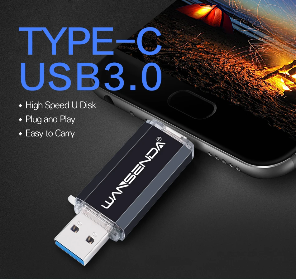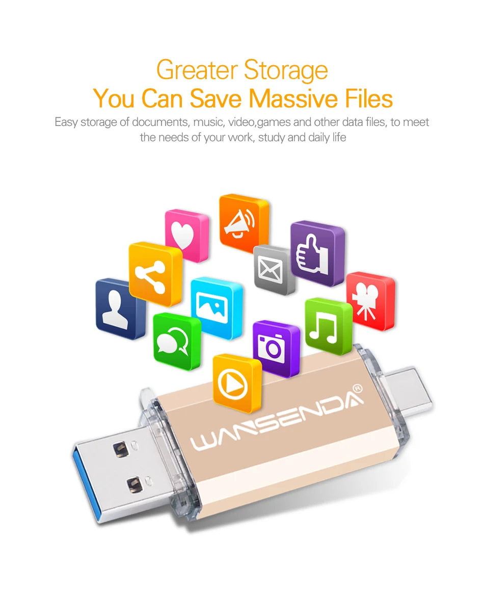 Comprar WANSENDA-unidad Flash USB tipo C de 512GB, 2 en 1, tipo C y USB3.0, Pendrive de alta velocidad, 256GB, 128GB, 64GB, 32GB, 16GB