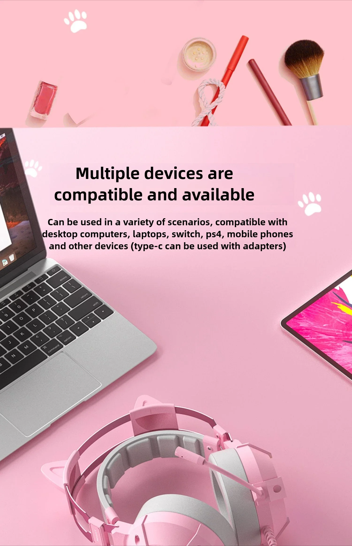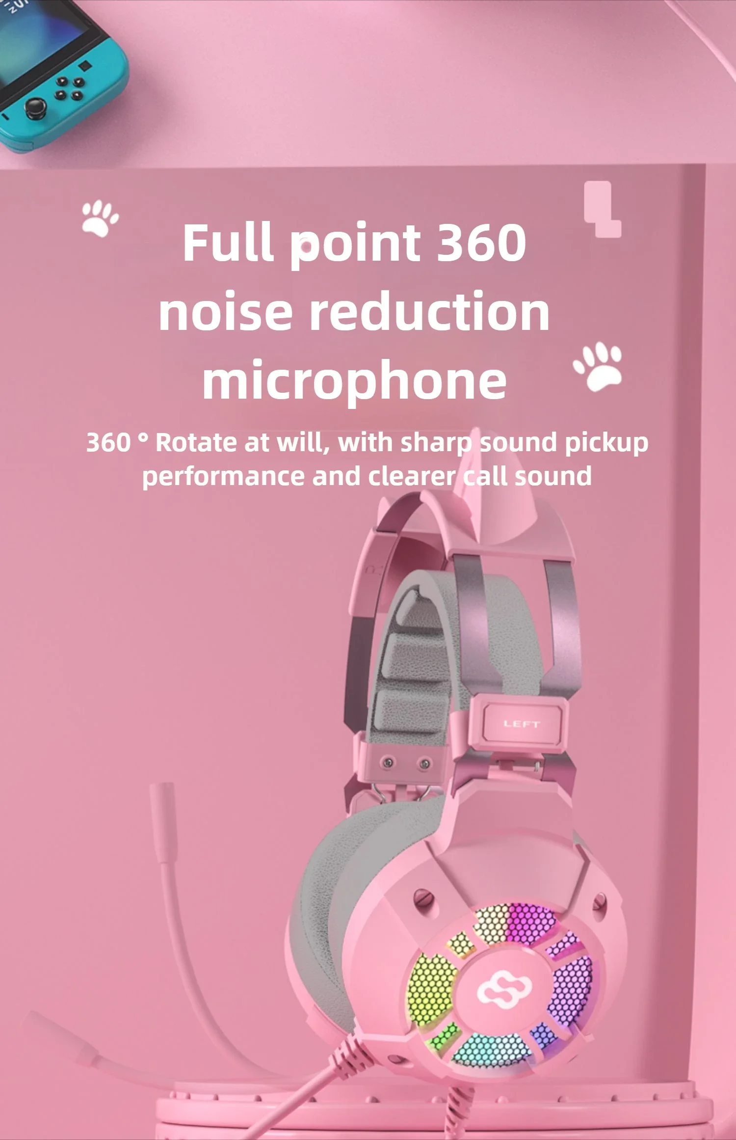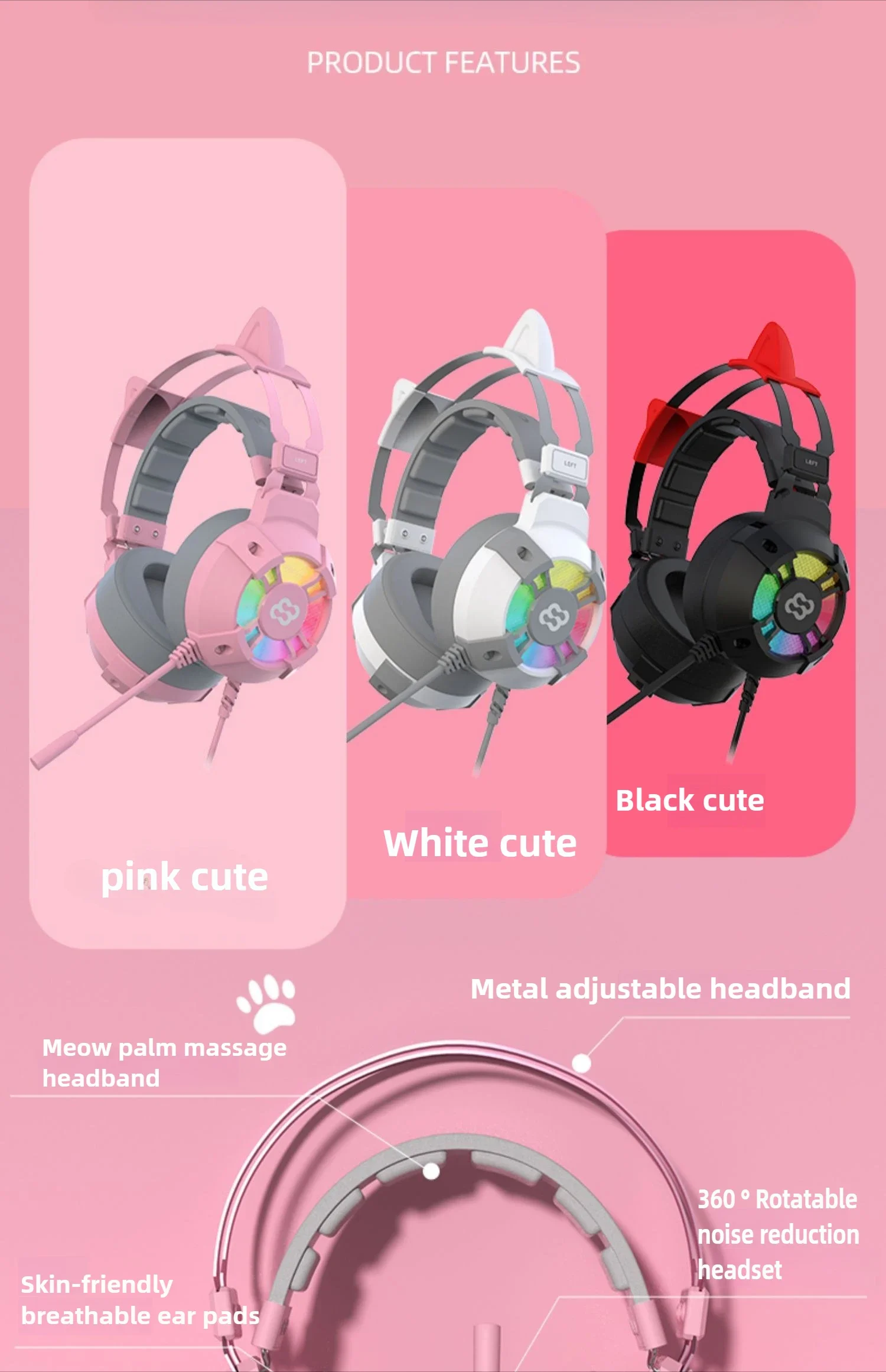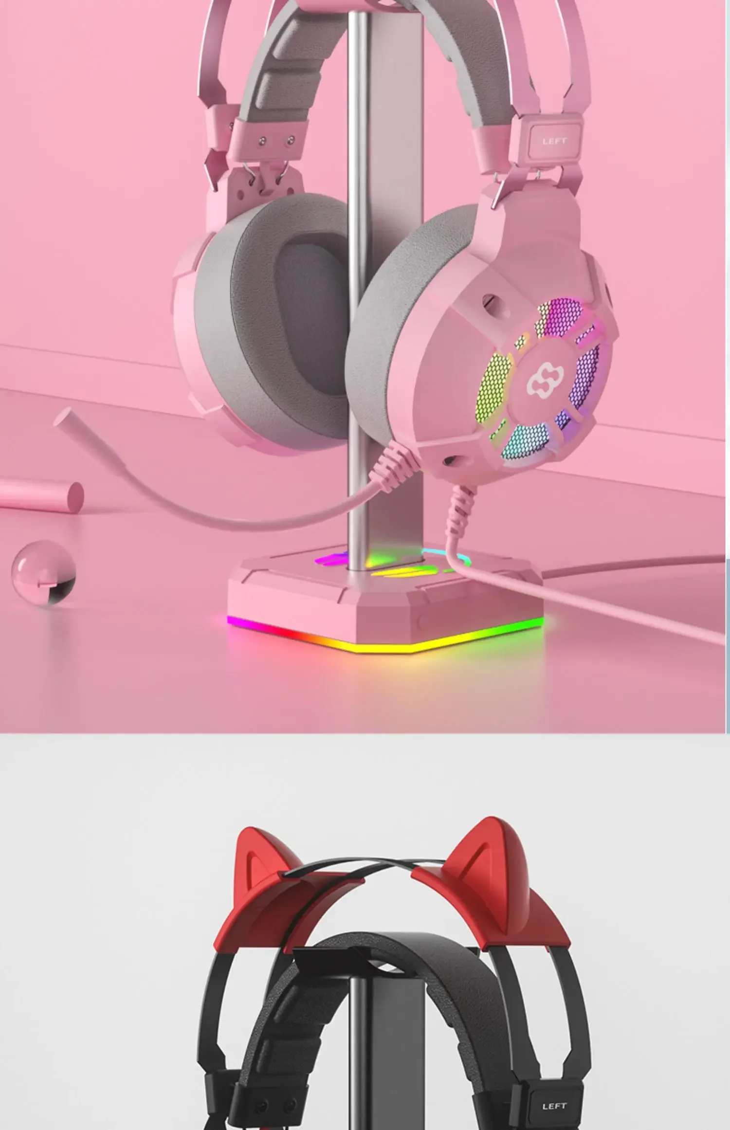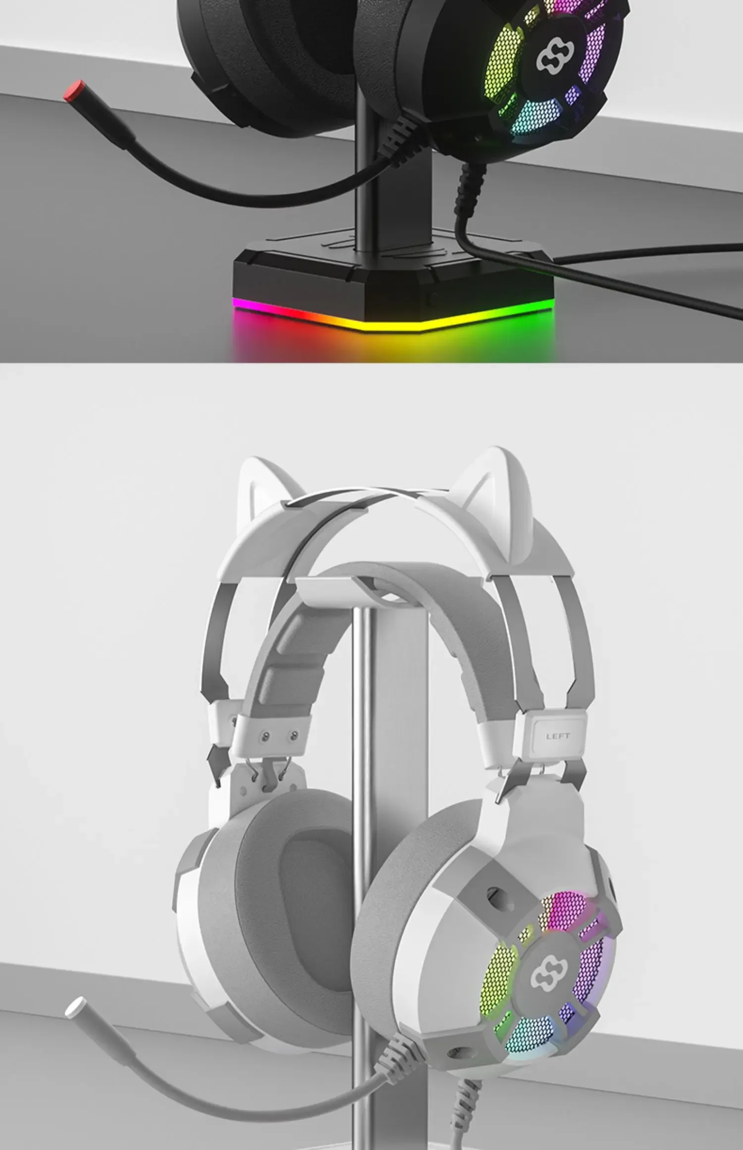 Comprar Wauer E68 Auriculares para juegos plegables con orejas de gato, auriculares estéreo con graves envolventes virtuales 7,1 con micrófono y luces LED para jugadores de PC