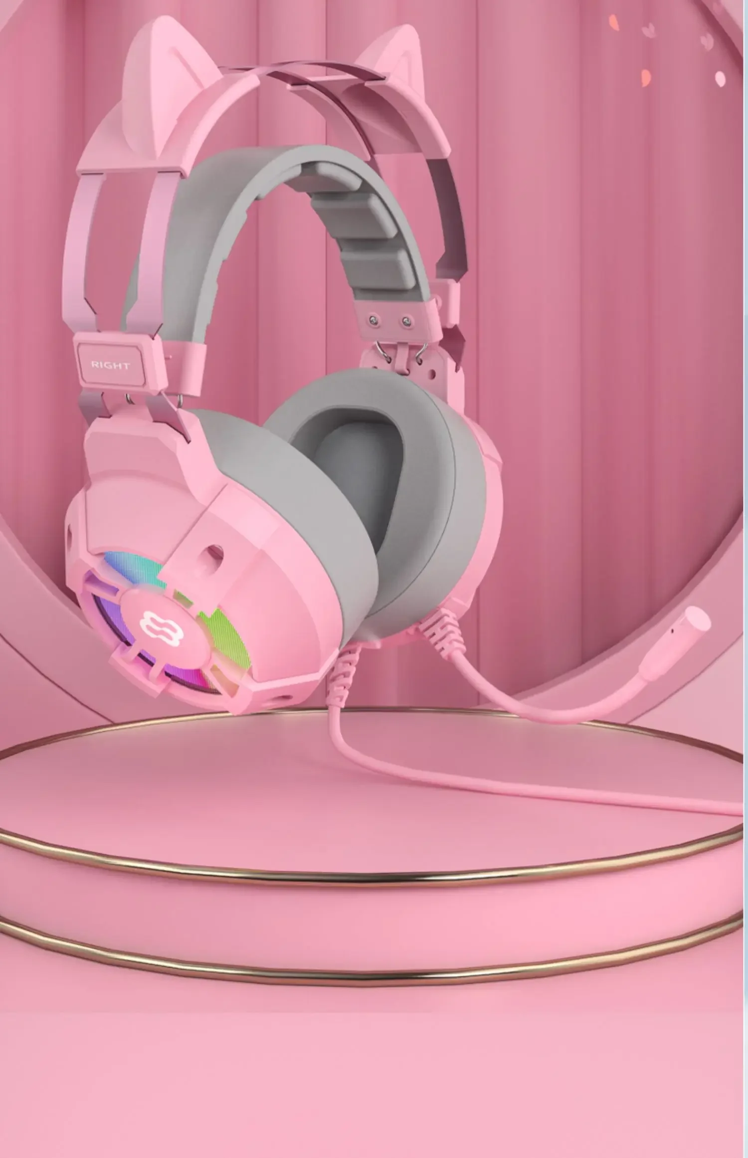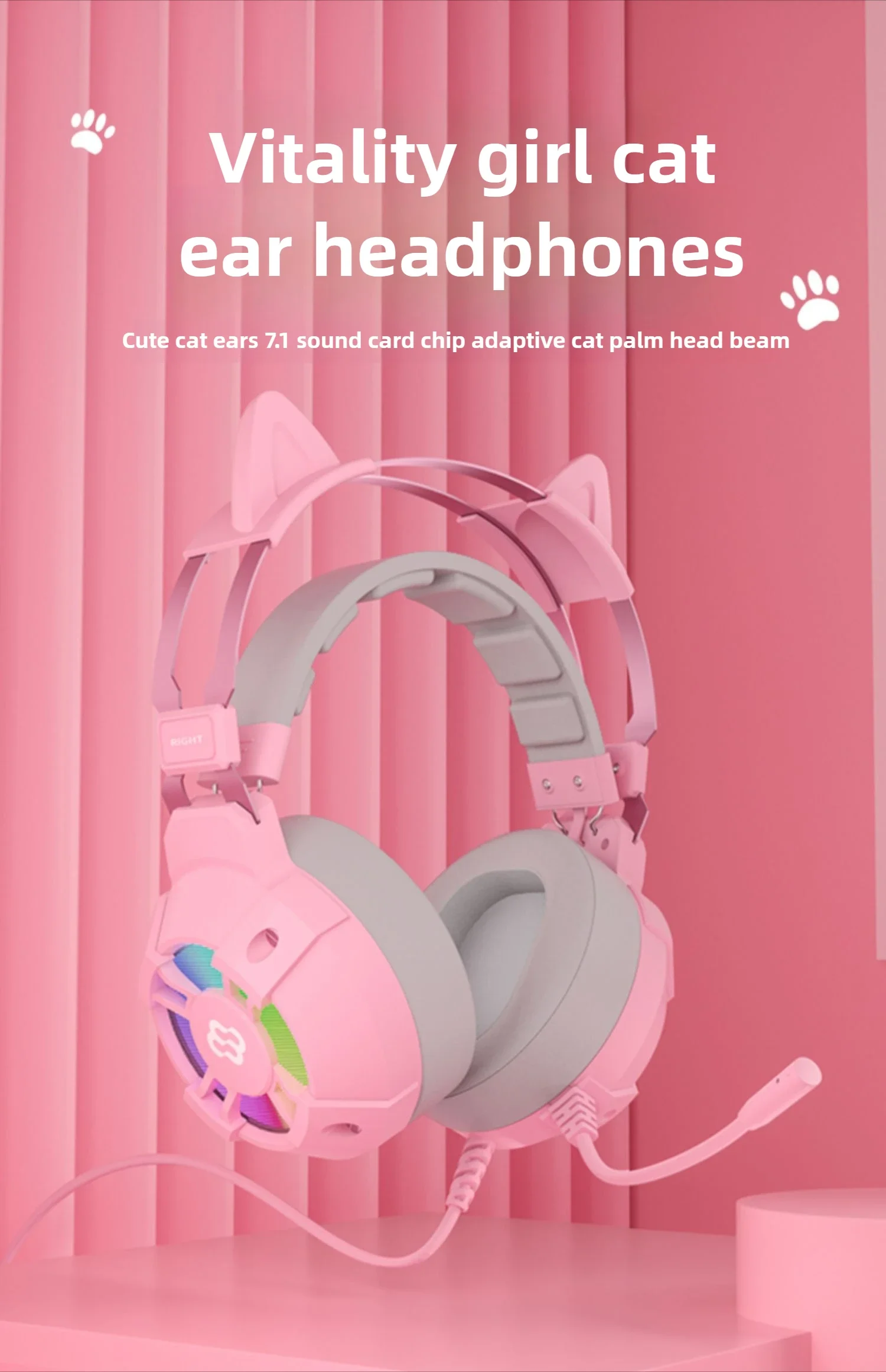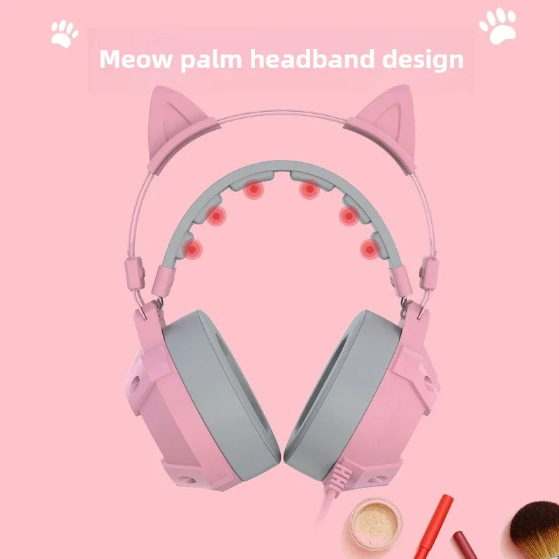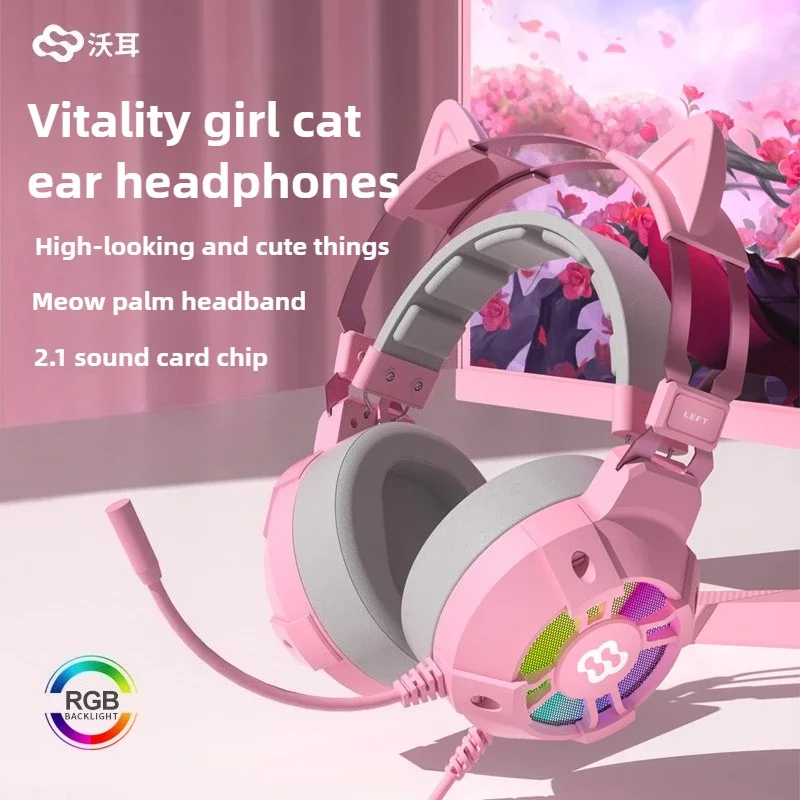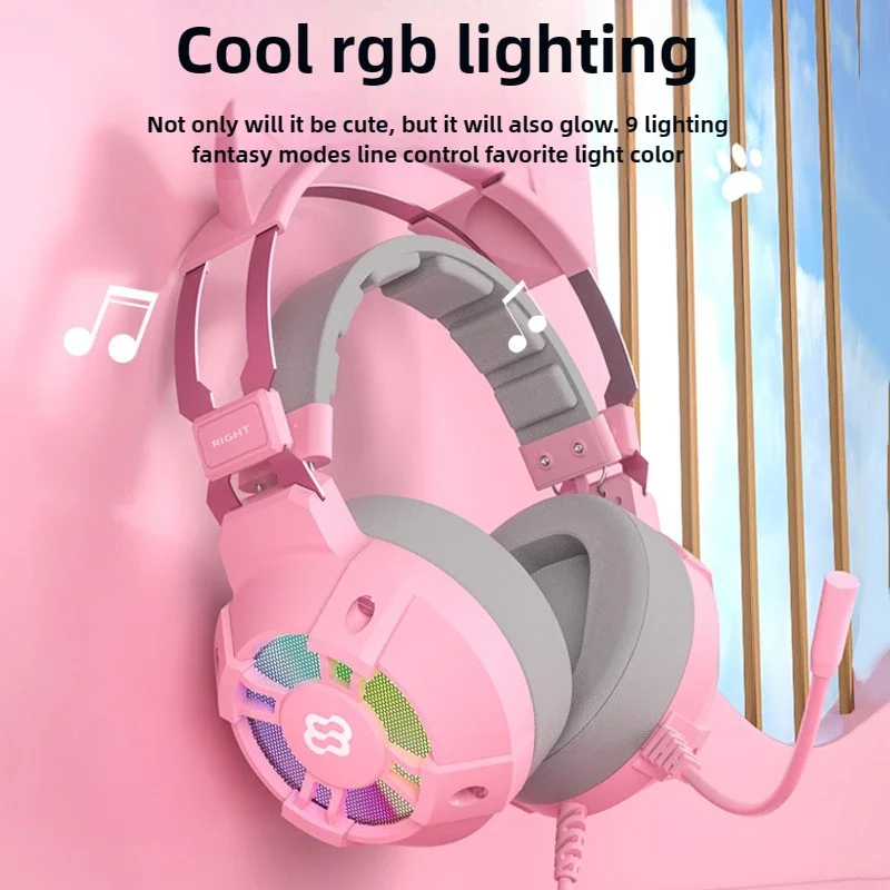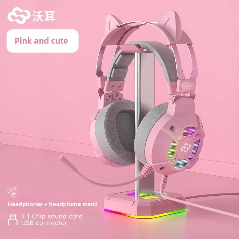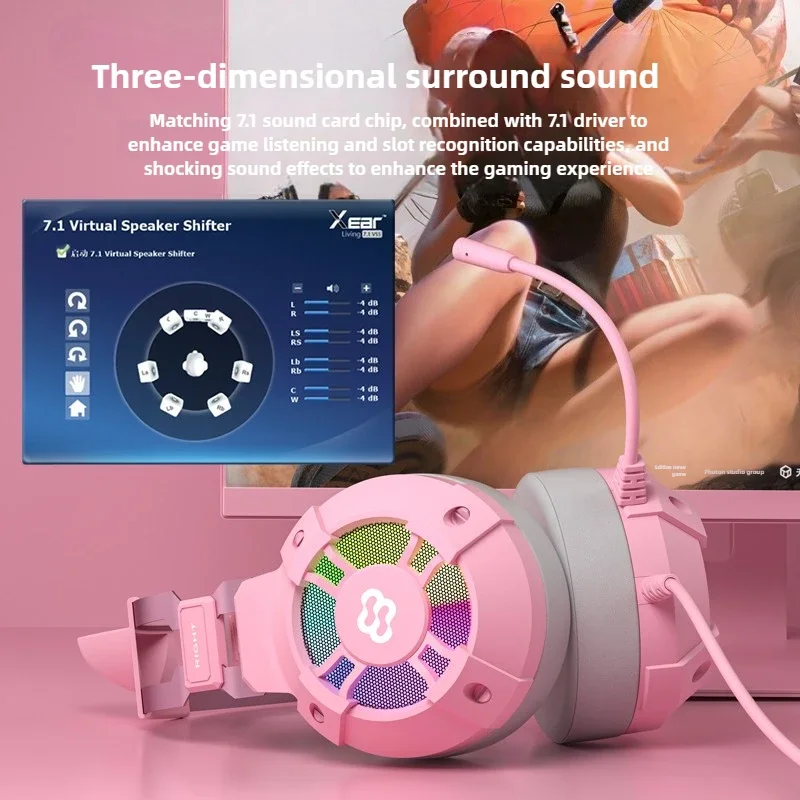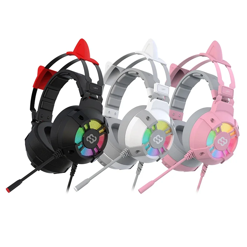 Waller E68 auriculares para juegos con orejas de gato 7,1 auriculares estéreo virtuales Surround Bass con micrófono luces LED para jugadores de PC plegables