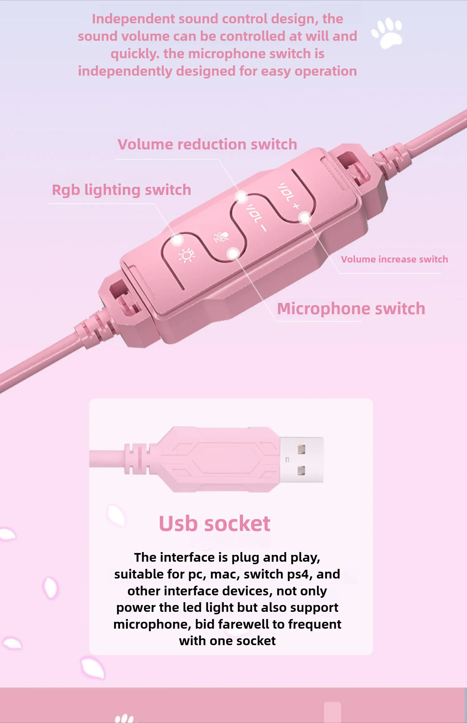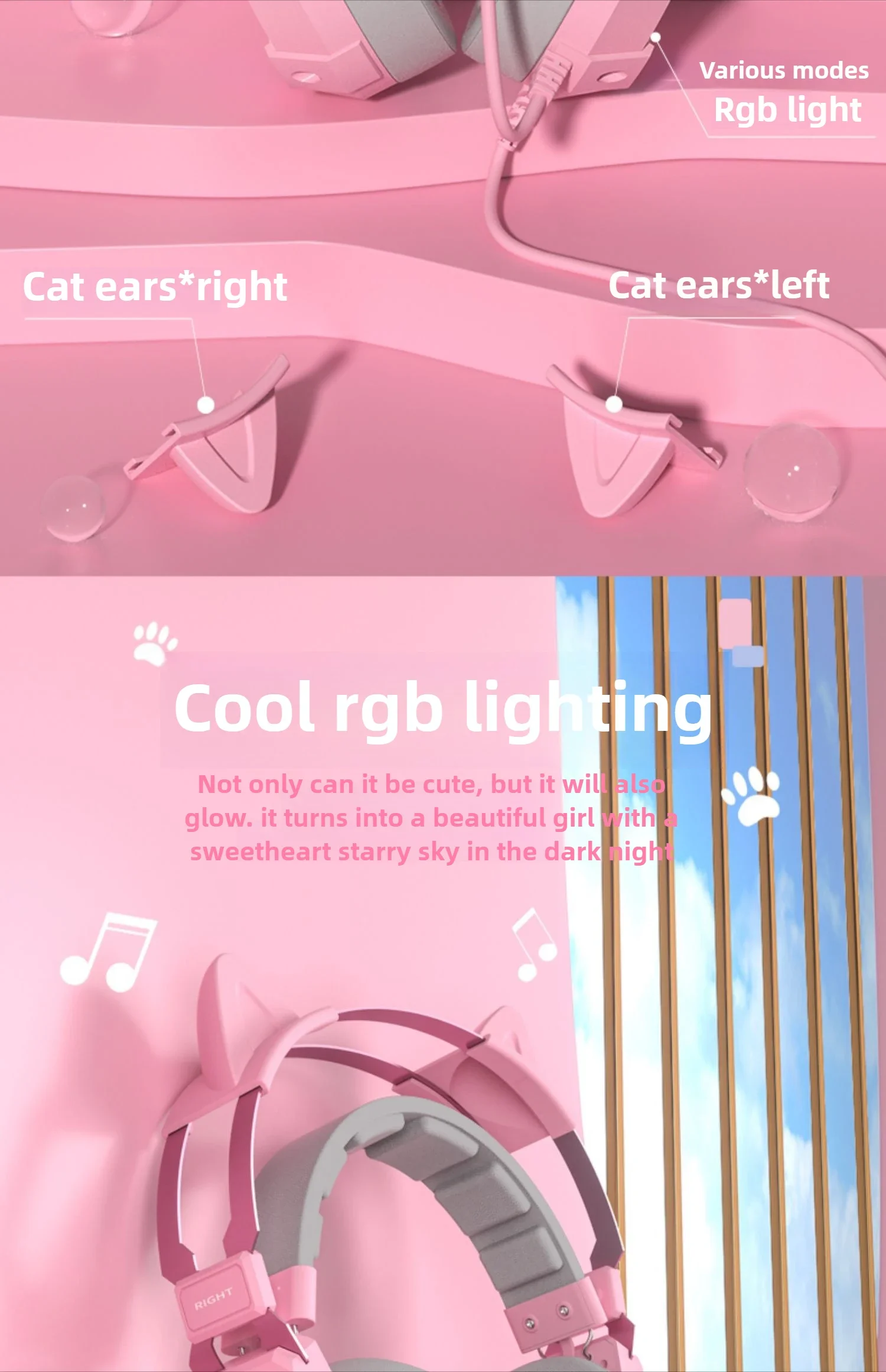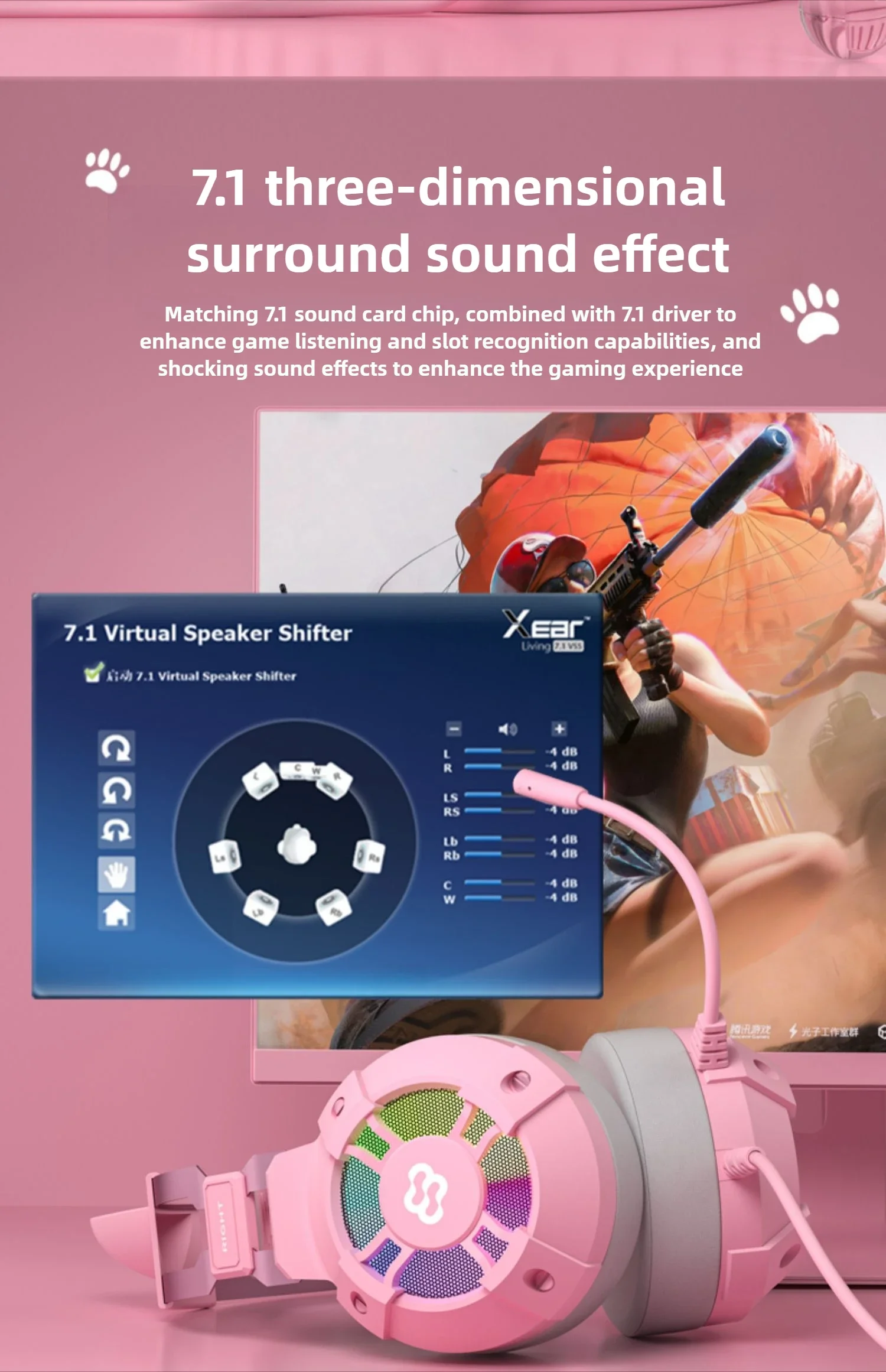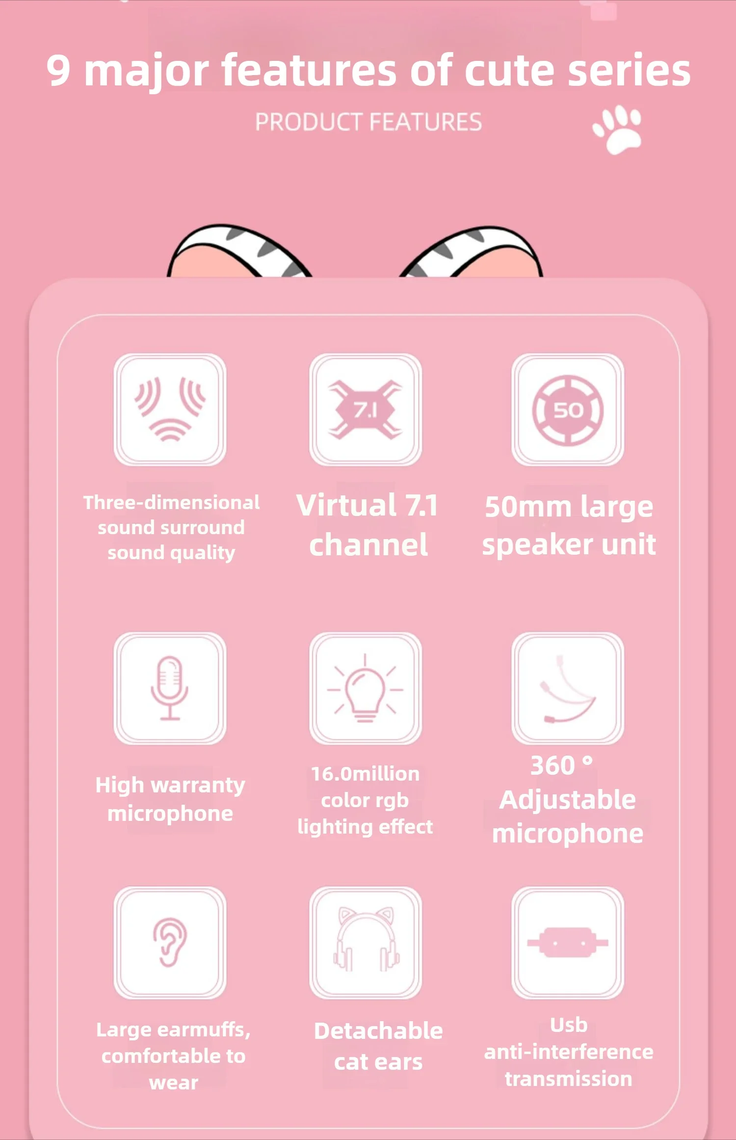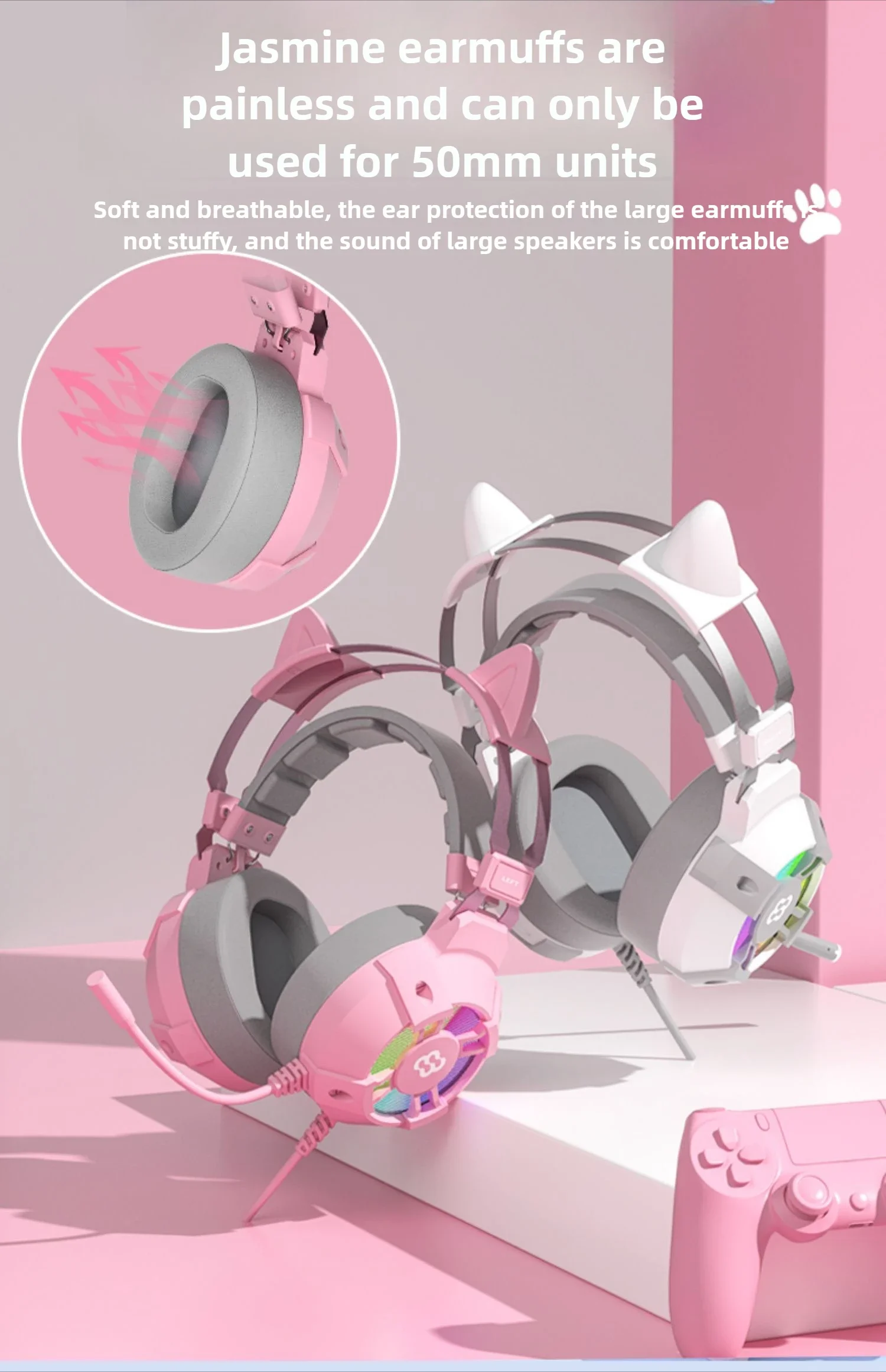 Waller E68 auriculares para juegos con orejas de gato 7,1 auriculares estéreo virtuales Surround Bass con micrófono luces LED para jugadores de PC plegables