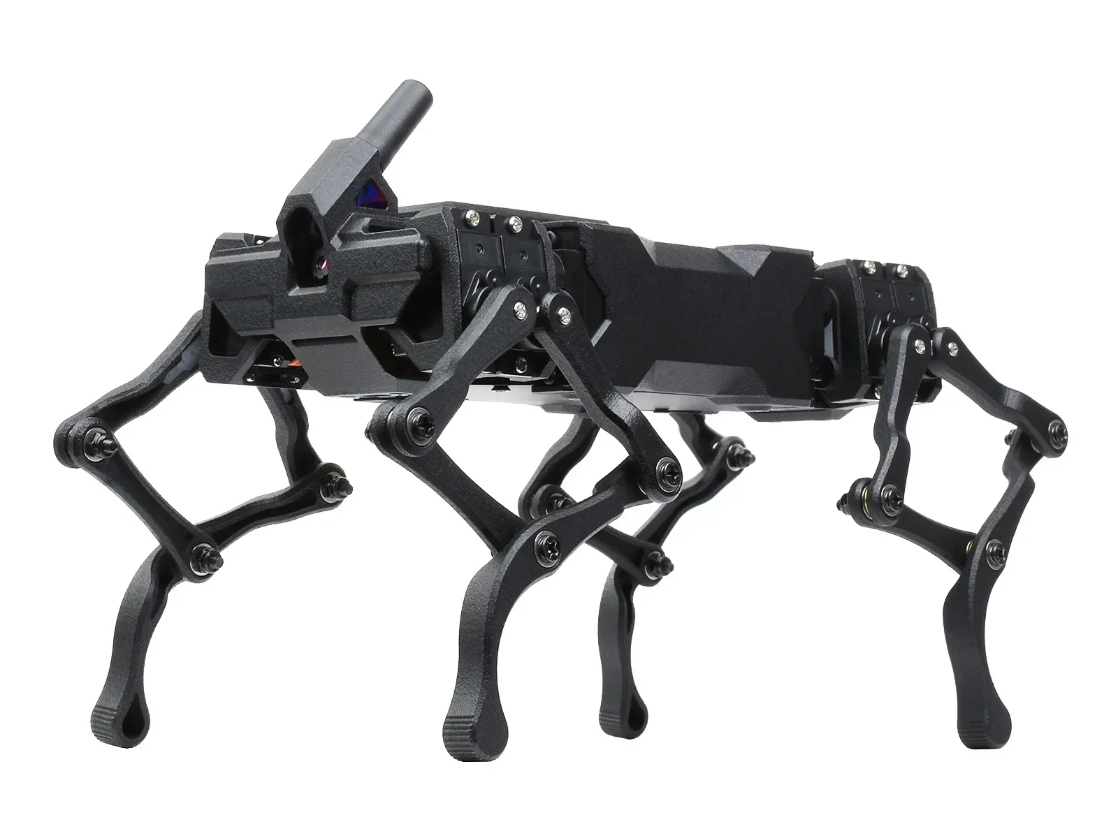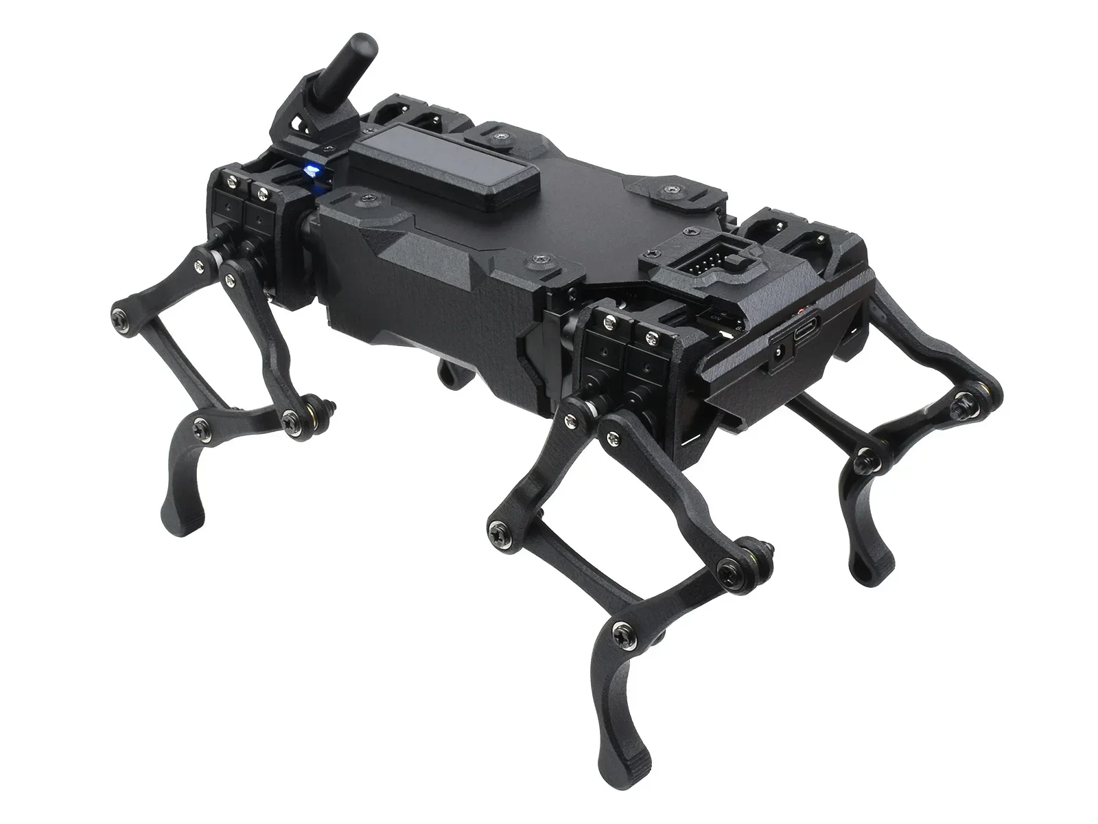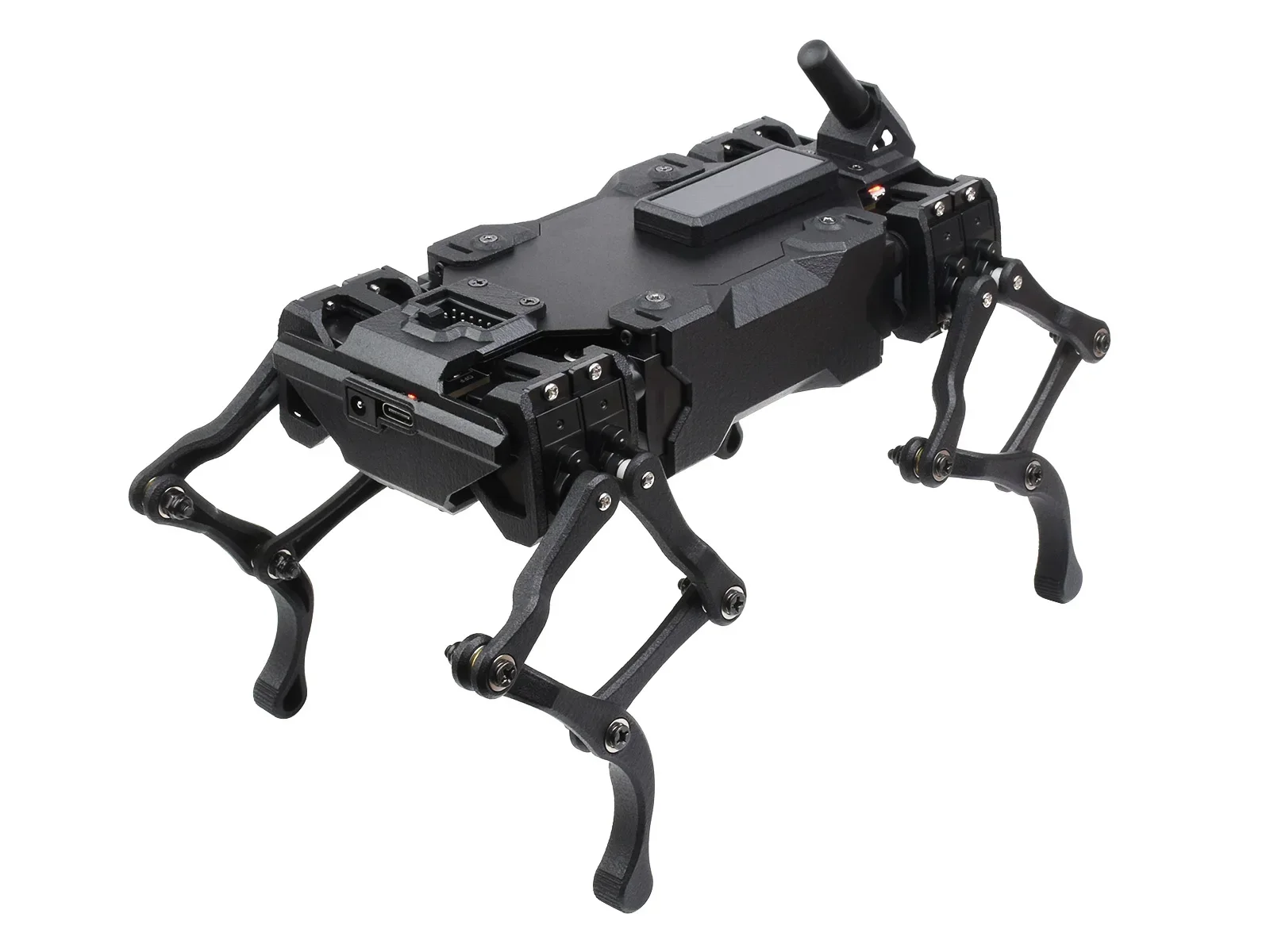 El WAVEGO es un robot biónico tipo perro de alto DOF que cuenta con 2.3kg.Servos de torsión grande en cm, estructura confiable y movimiento flexible, que incorporan dispositivos como cámara frontal, rastreador de movimiento de 9 ejes, indicador RGB, etc., junto con la aplicación web multiplataforma de código abierto.Utiliza el ESP32 como subcontrolador para la resolución inversa de la biela y la generación de marcha, compartiendo la tarea de cálculo para el controlador del host, se puede conectar una Raspberry Pi adicional como controlador de host para una operación de decisión de alto nivel.
