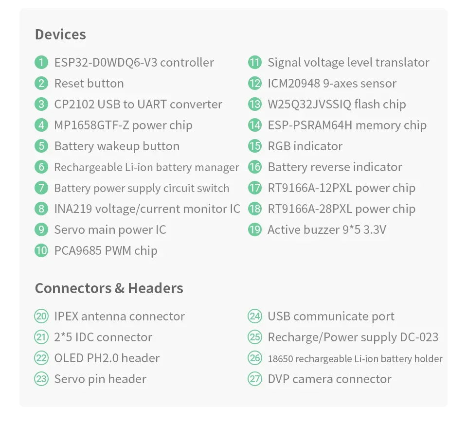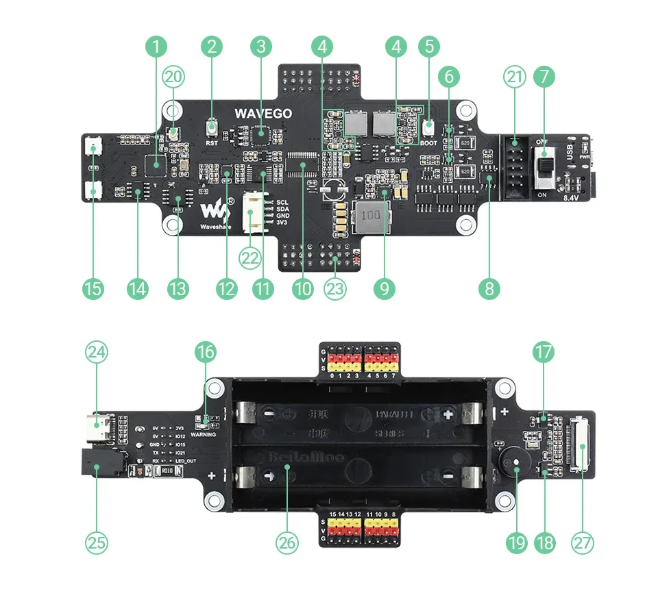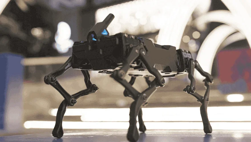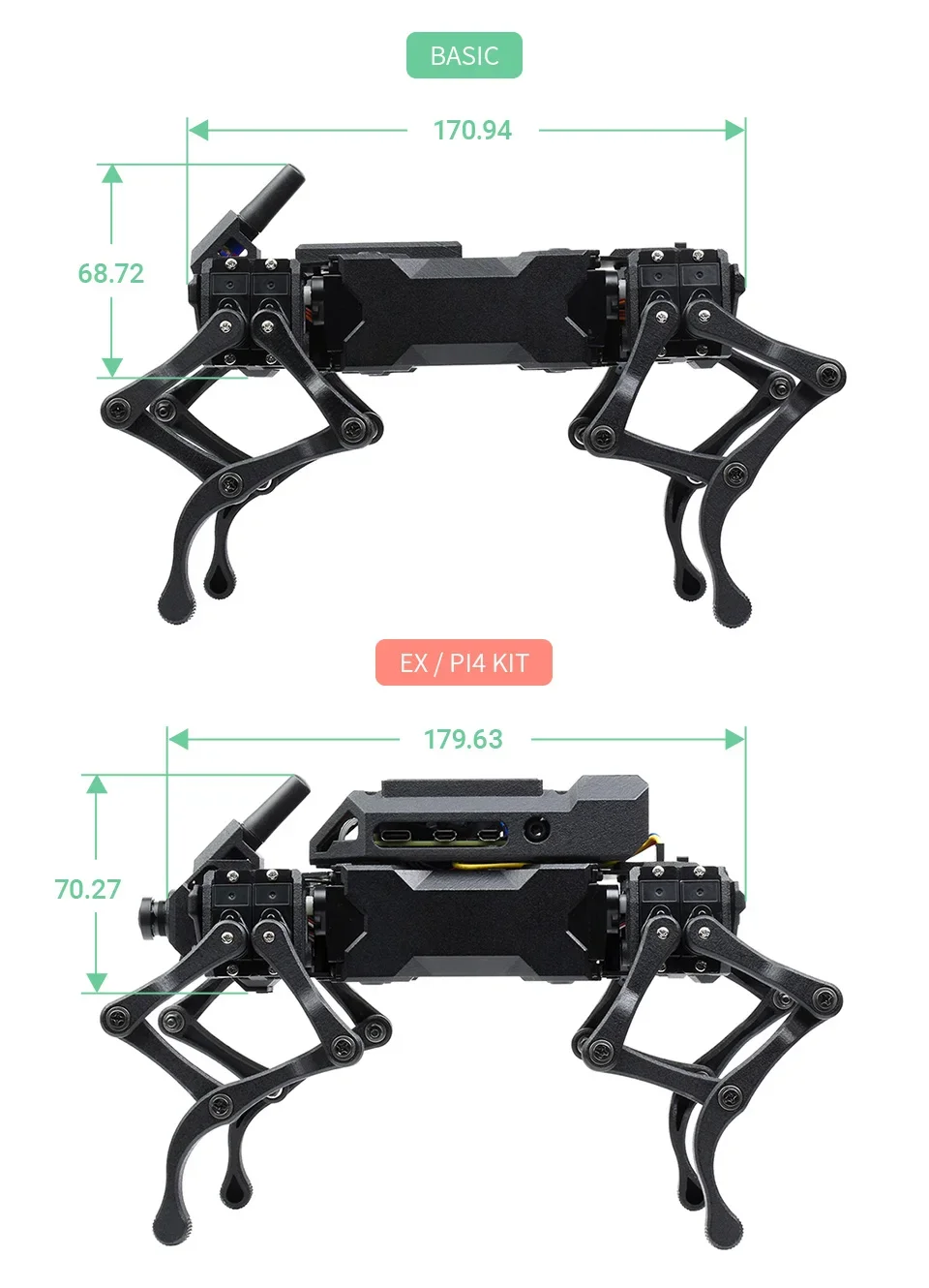 El WAVEGO es un robot biónico tipo perro de alto DOF que cuenta con 2.3kg.Servos de torsión grande en cm, estructura confiable y movimiento flexible, que incorporan dispositivos como cámara frontal, rastreador de movimiento de 9 ejes, indicador RGB, etc., junto con la aplicación web multiplataforma de código abierto.Utiliza el ESP32 como subcontrolador para la resolución inversa de la biela y la generación de marcha, compartiendo la tarea de cálculo para el controlador del host, se puede conectar una Raspberry Pi adicional como controlador de host para una operación de decisión de alto nivel.