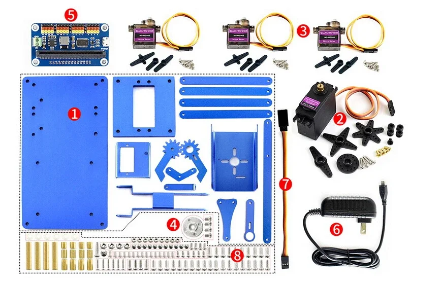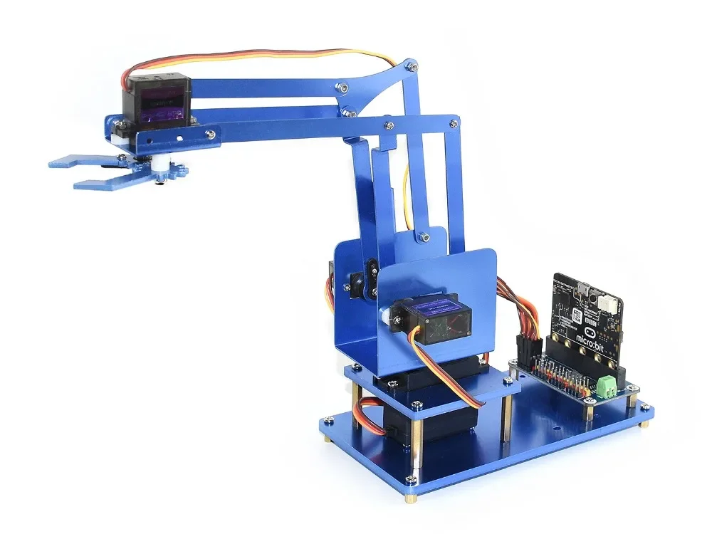 Equipado con 4 servos de engranaje metálico (1x MG996R, 3x MG90S), gran fuerza de torsión, movimiento suave