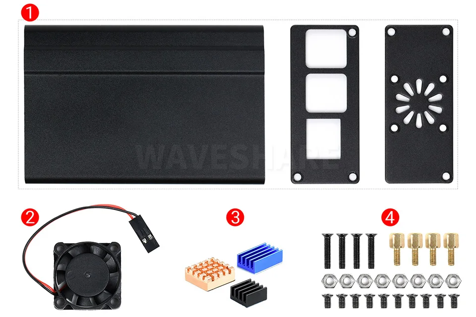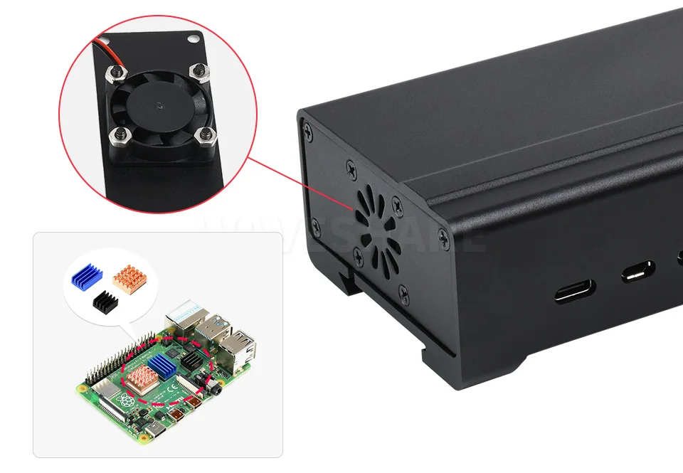 Comprar Waveshare carcasa de aluminio para Raspberry Pi 4, con ventilador de refrigeración y disipadores de calor, placas no incluidas