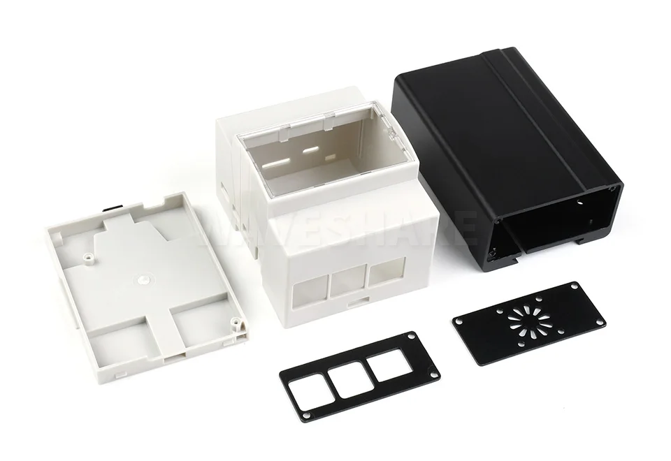 Caja de aluminio de riel DIN para Raspberry Pi 4Viene con ventilador de refrigeración y disipadores de calor
