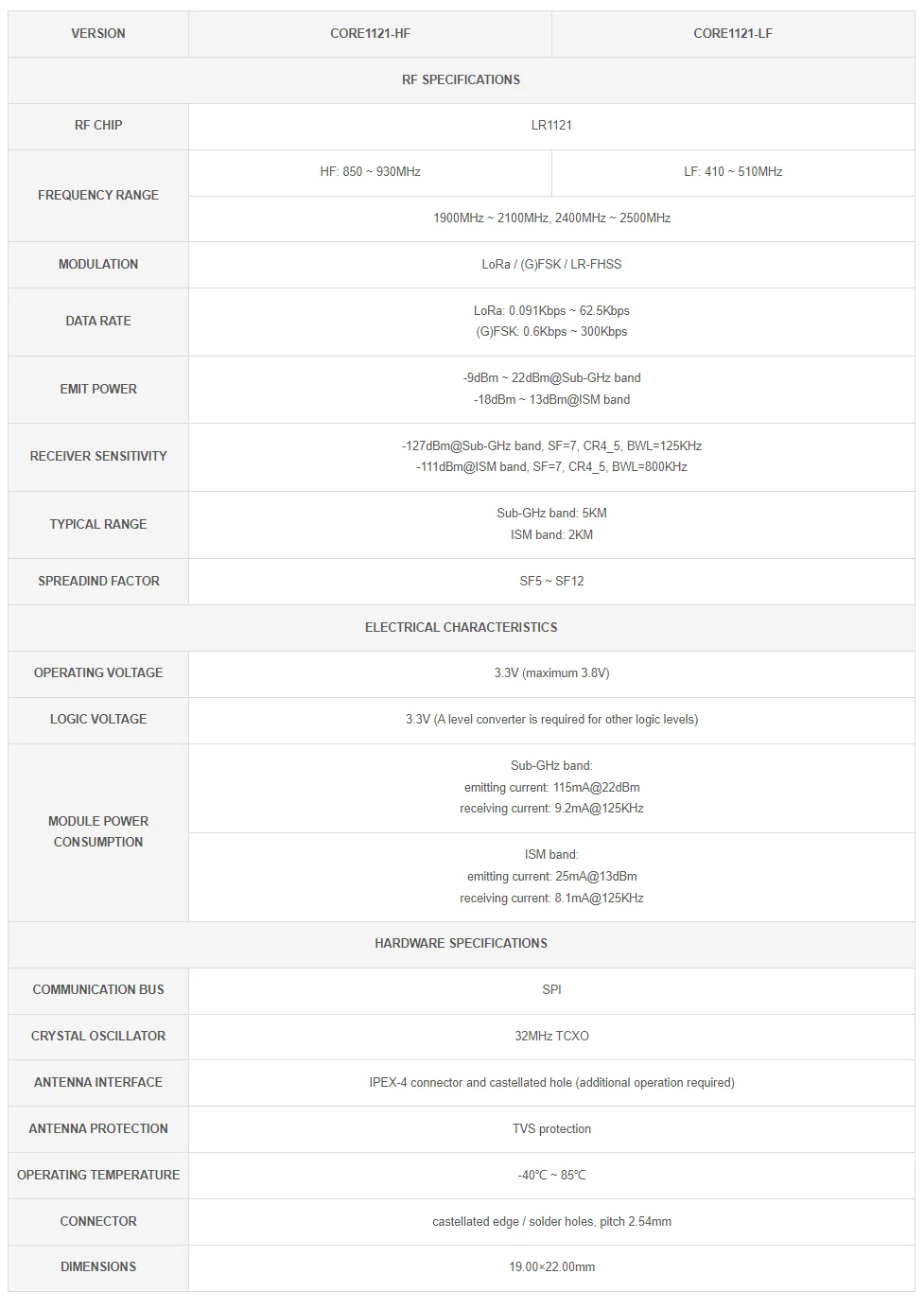 Comprar Waveshare Core1121 LoRa LR1121 HF LF SPI para subGHz y 2,4 GHz Core1121-HF / Core1121-LF