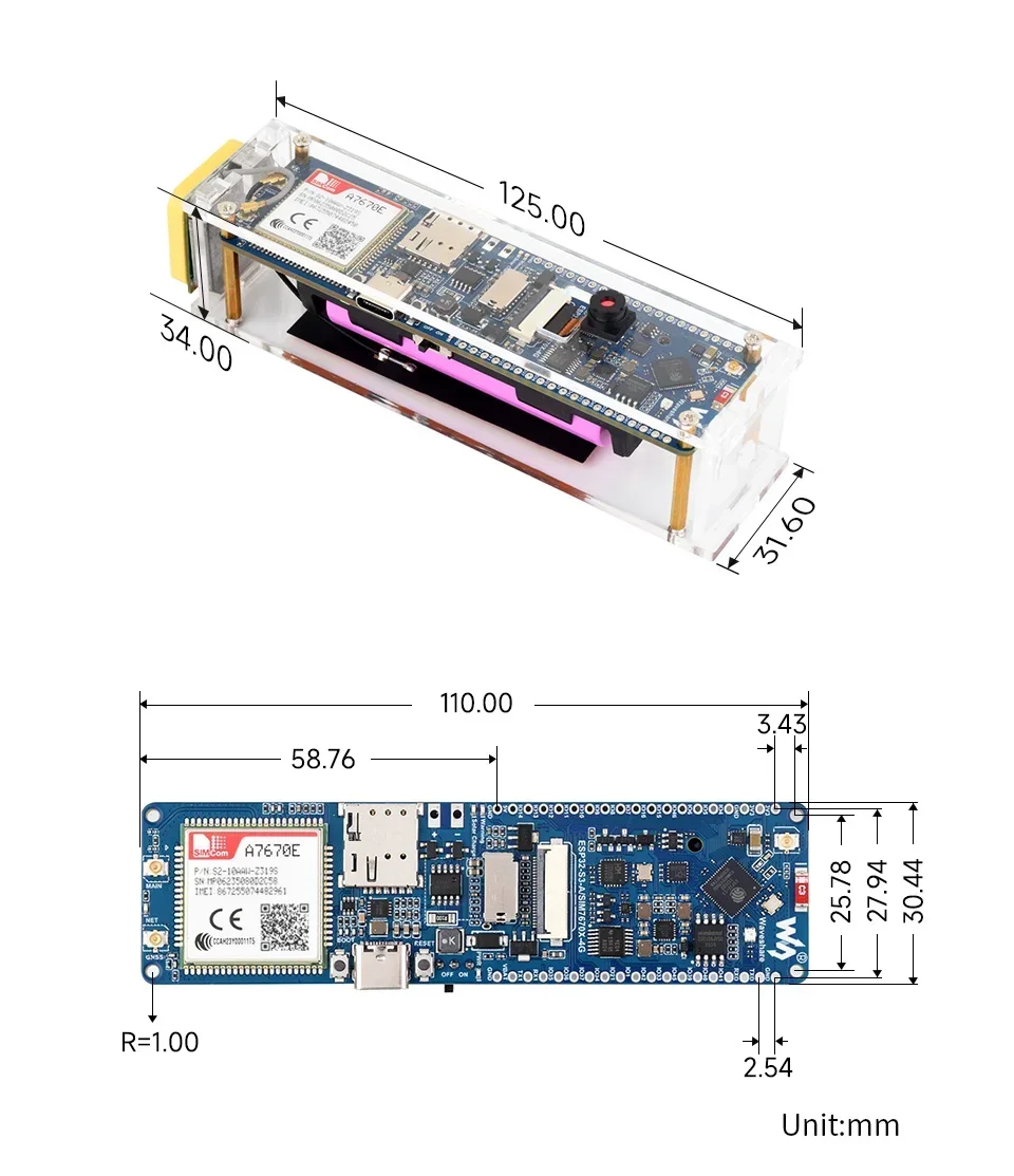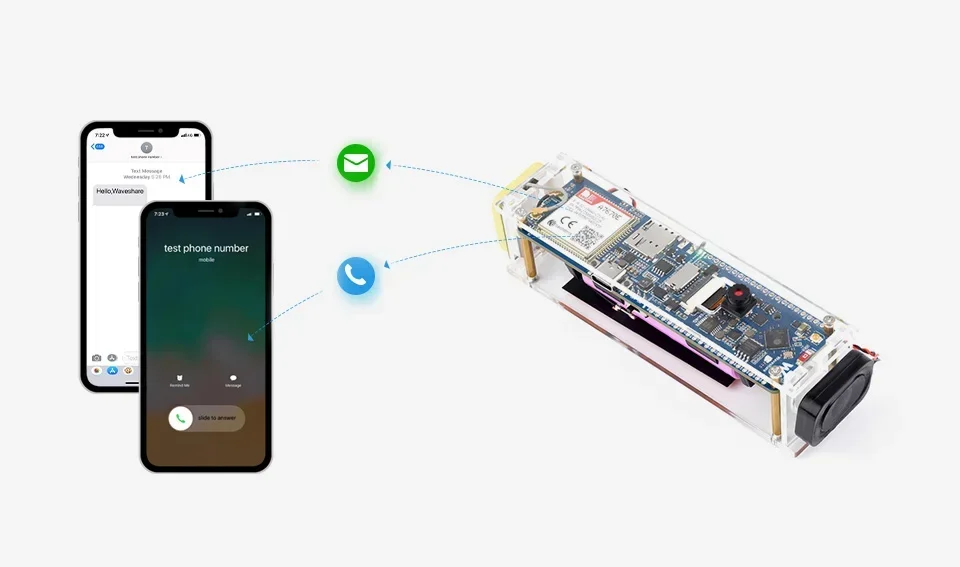 Equipado con el módulo celular A7670E-FASE, admite redes 4G Cat-1/2G, posicionamiento GNSS, llamadas telefónicas, SMS y otras funciones.