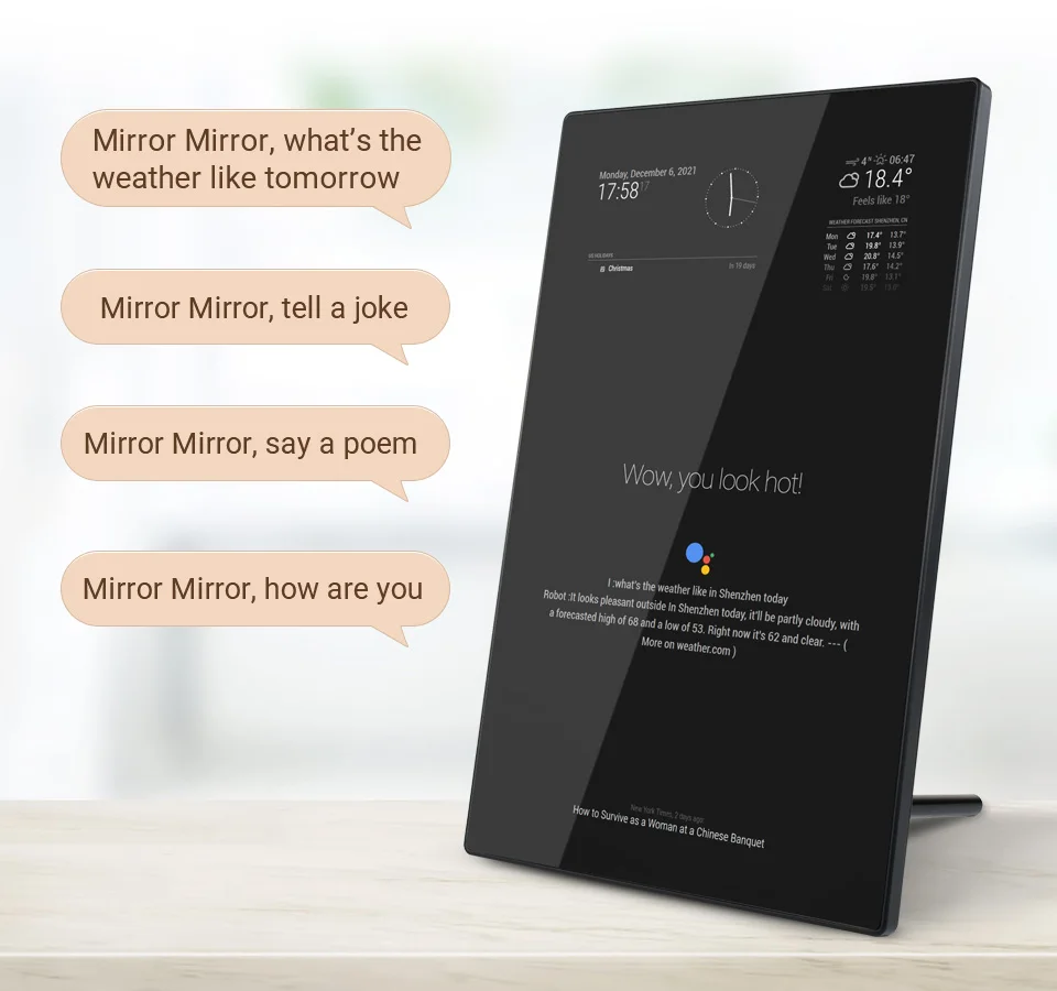 Además de un espejo normal, este espejo mágico le mostrará noticias, clima, tiempo y más contenido definido por el usuario.