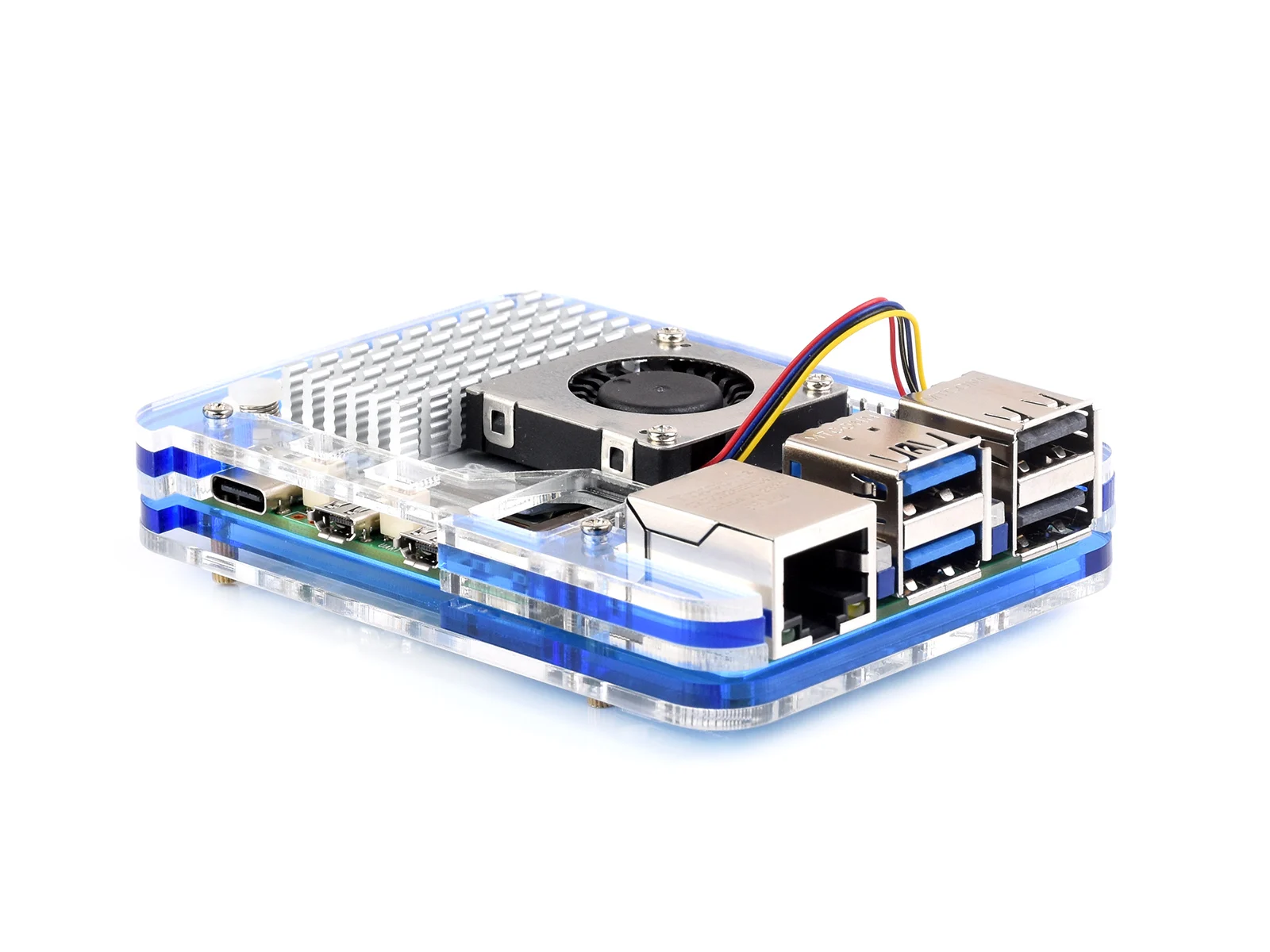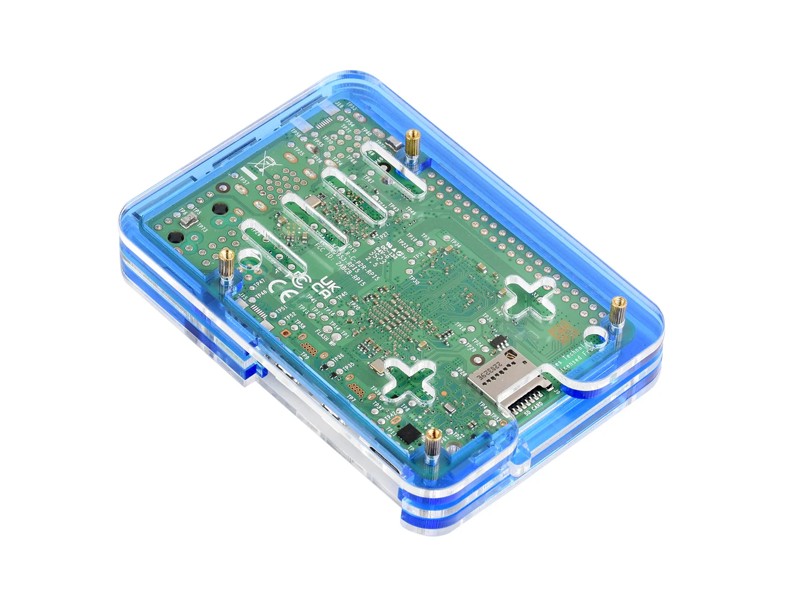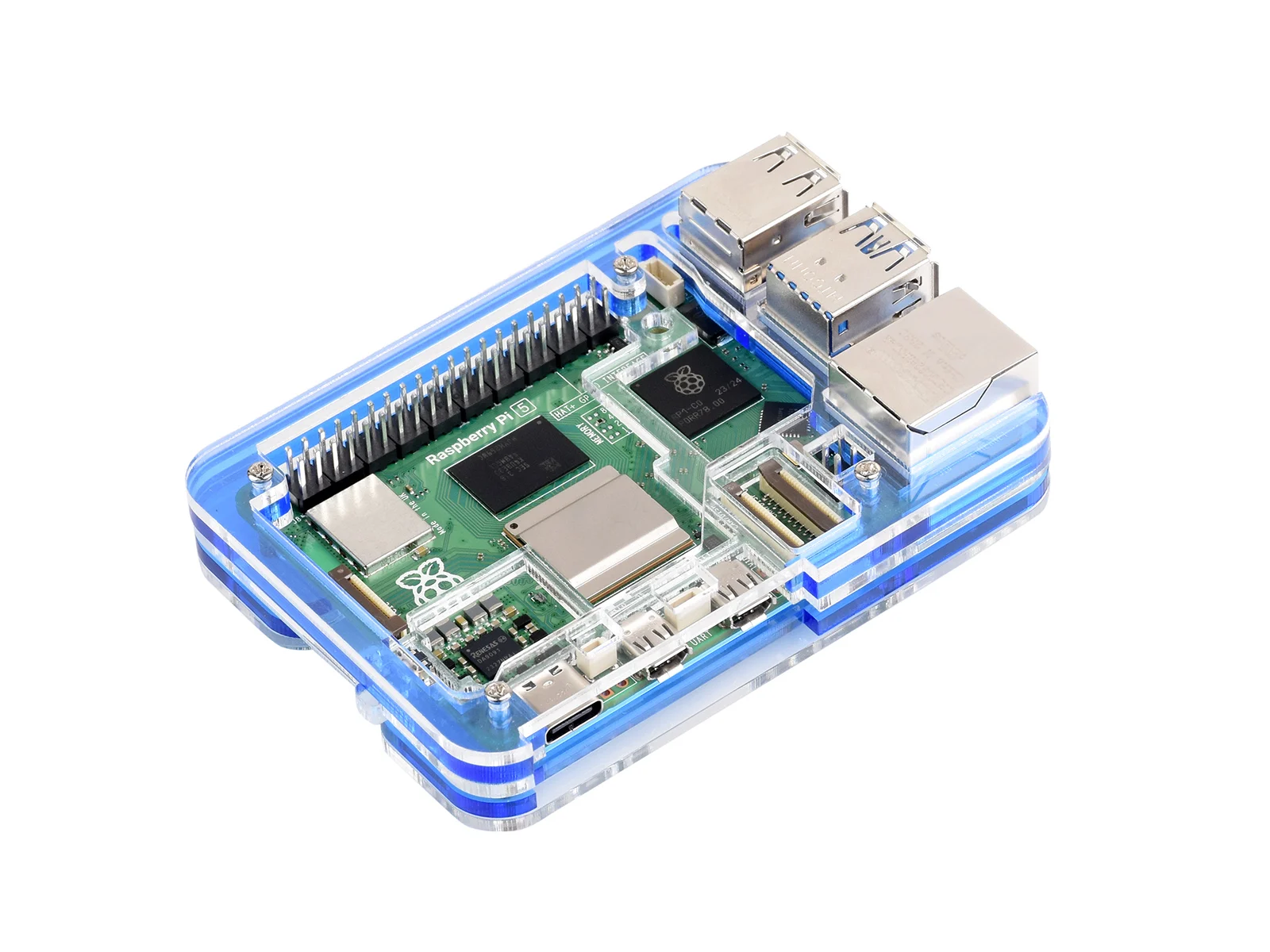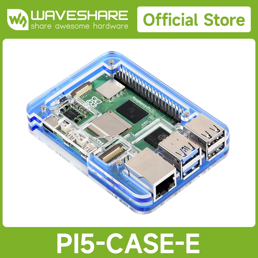 Comprar Waveshare Estuche Acrílico Transparente y Azul para Raspberry Pi 5, Admite Instalación de Enfriador Activo Oficial