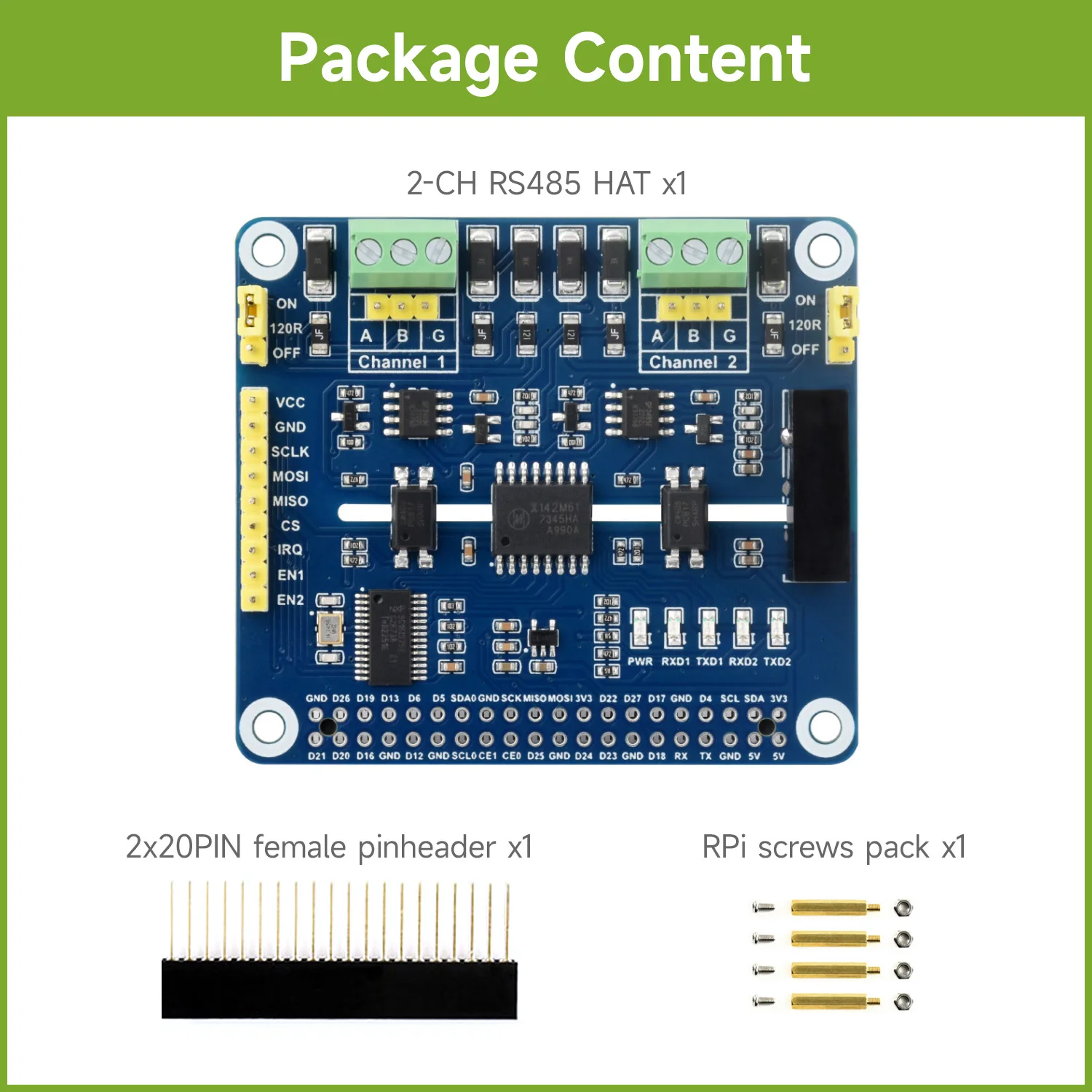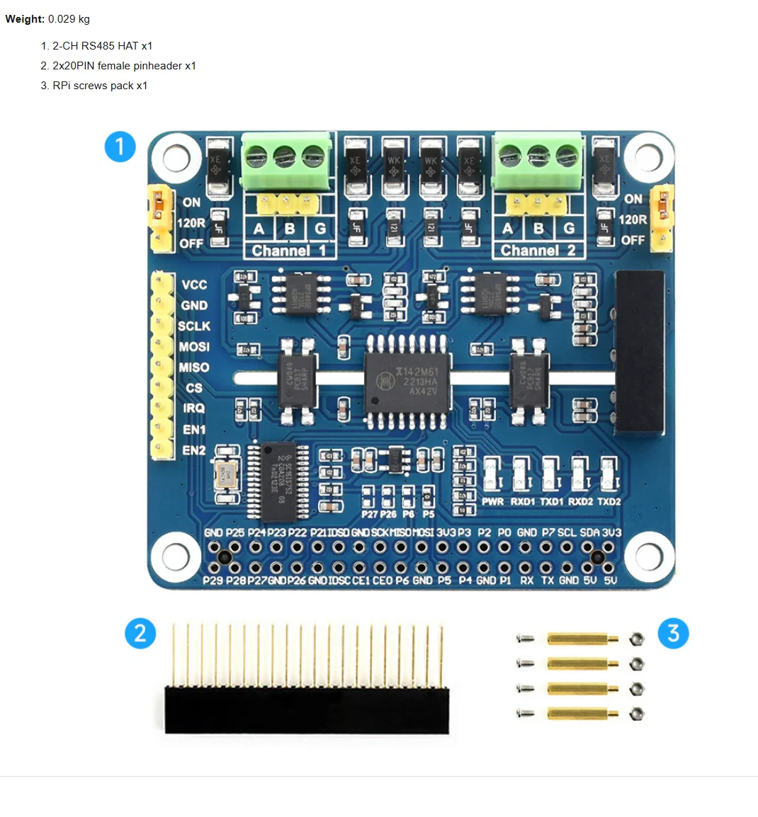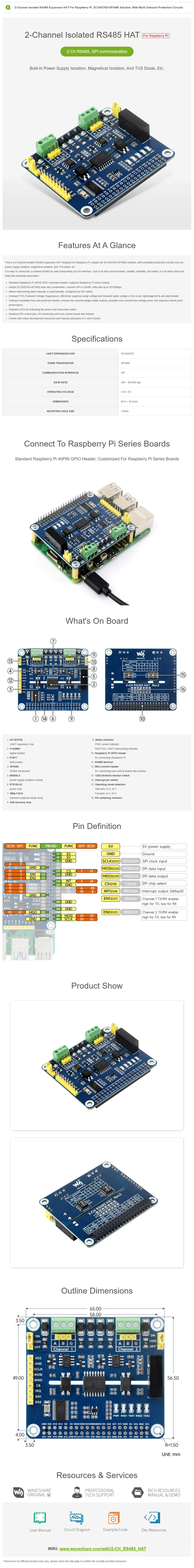 Comprar Waveshare HAT de expansión RS485 aislado de 2 canales para Raspberry Pi, solución SC16IS752+SP3485, con múltiples integrados