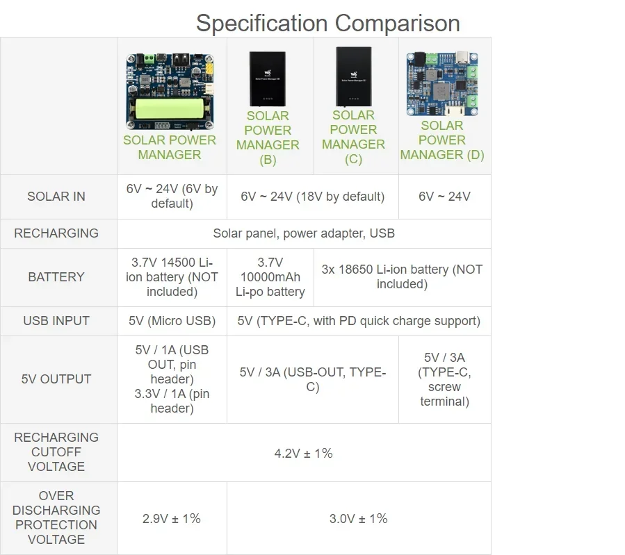 ElMódulo de gestión de energía solar (D)está diseñado para paneles solares de 6 V ~ 24 V, puede cargar la batería de litio recargable de 3,7 V a través de un panel solar o un conector tipo C y proporciona una salida regulada de 5 V/3 A (admite múltiples protocolos como PD/QC/FCP/PE/SFCP ).El módulo cuenta con la función MPPT (seguimiento de punto de máxima potencia) y circuitos de protección múltiple, por lo tanto, es capaz de seguir funcionando con alta eficiencia, estabilidad y seguridad.Es adecuado para IoT de bajo consumo y energía solar y otros proyectos de protección ambiental.