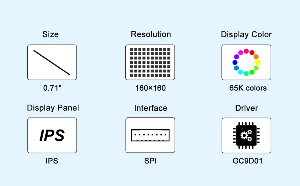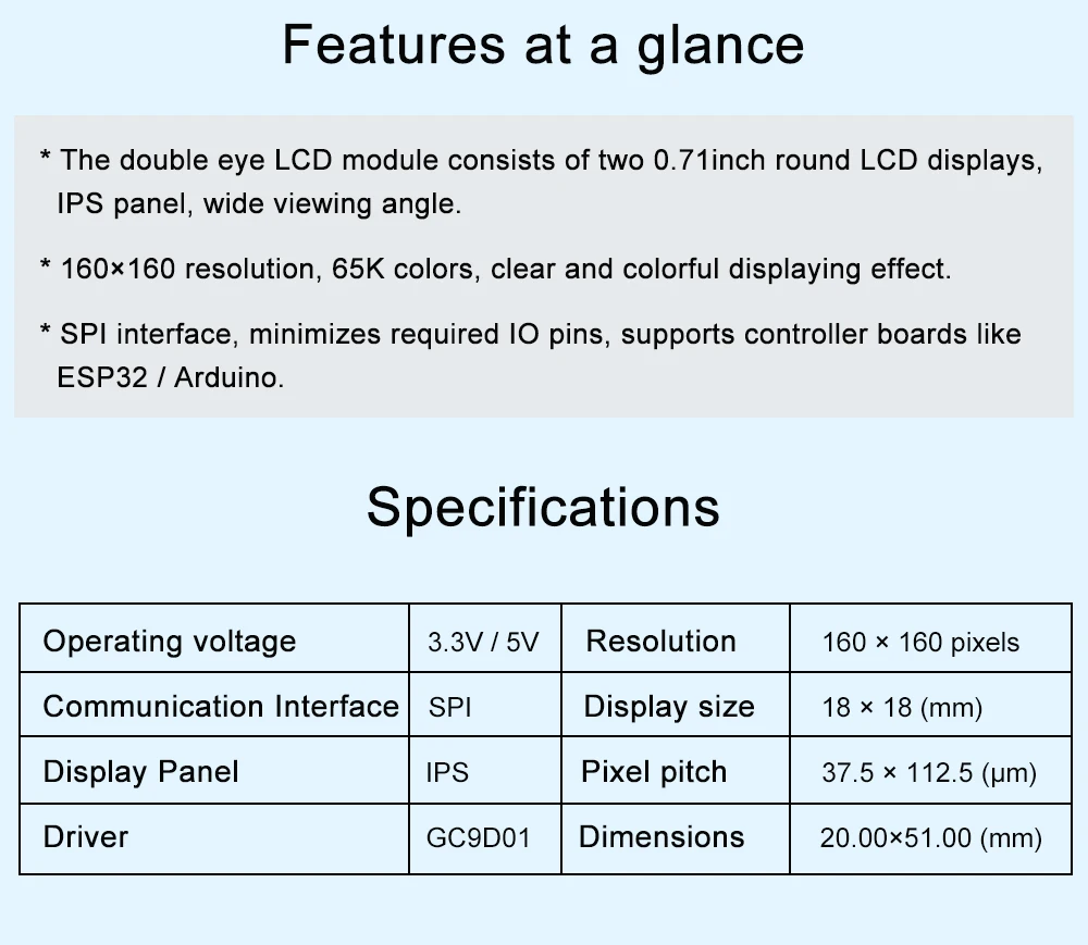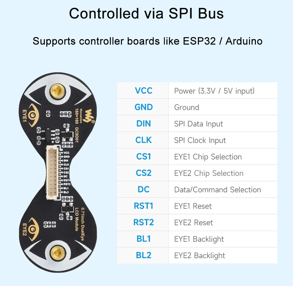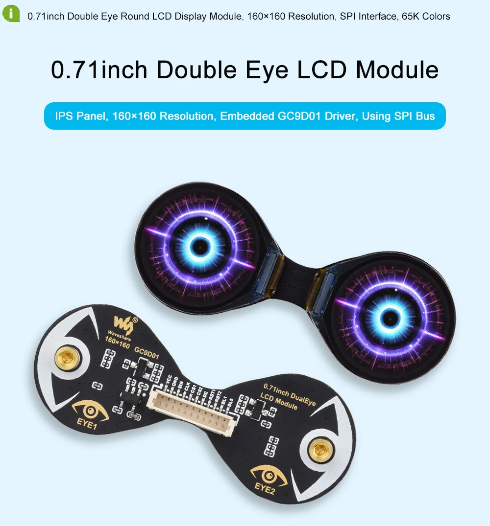 Comprar Waveshare Módulo de pantalla LCD redondo de doble ojo de 0,71 pulgadas, resolución de 160 × 160, SPI, pantalla LCD de 65K colores para ESP32 / Arduino