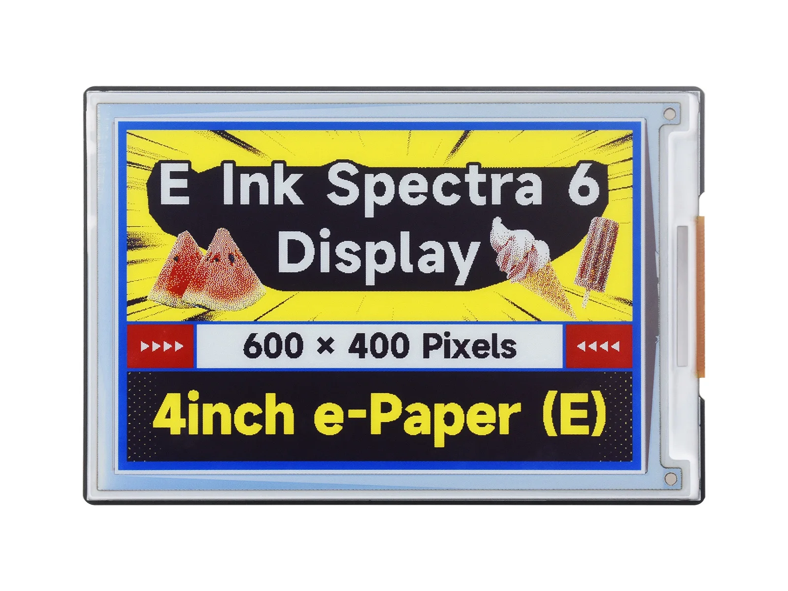 Pantalla de papel electrónico a todo color E Ink Spectra 6 (E6) de 4 pulgadas, 600 × 400 píxeles, comunicación SPI, opcional para HAT + Placa de controlador estándar, pantalla de tinta electrónicaBaja potencia, amplio ángulo de visión, efecto similar al papel sin electricidad