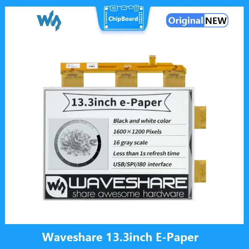 Comprar Waveshare-Pantalla de tinta electrónica de papel electrónico de 13,3 pulgadas para Raspberry pi,1600 × 1200 píxeles, negro/blanco, 16 escalas de grises, puerto paralelo, sin PCB