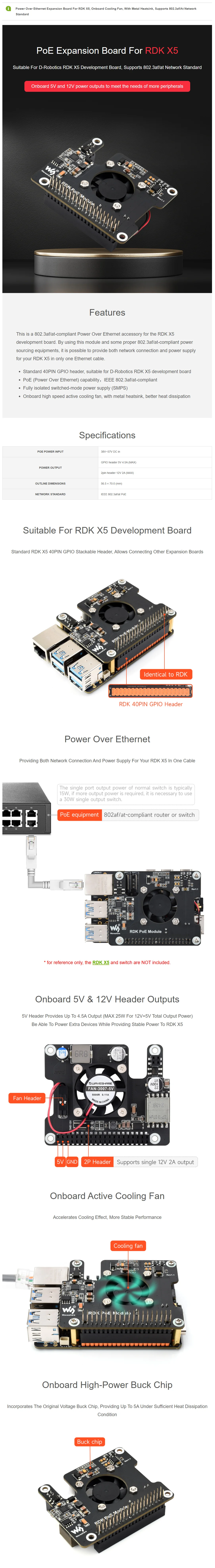 Comprar Waveshare PoE Expansion Board for RDK X5 - 802.3af/at Support, Cooling Fan & Metal Heatsink
