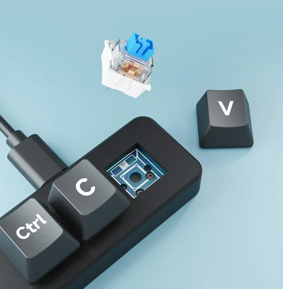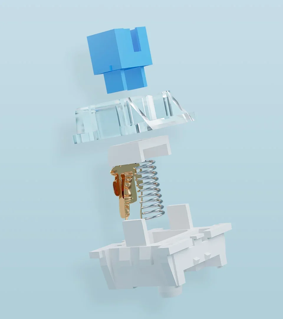 Adopta un interruptor azul a prueba de polvo de forma predeterminada, proporcionando retroalimentación táctil y sensación mecánica más pronunciadas.