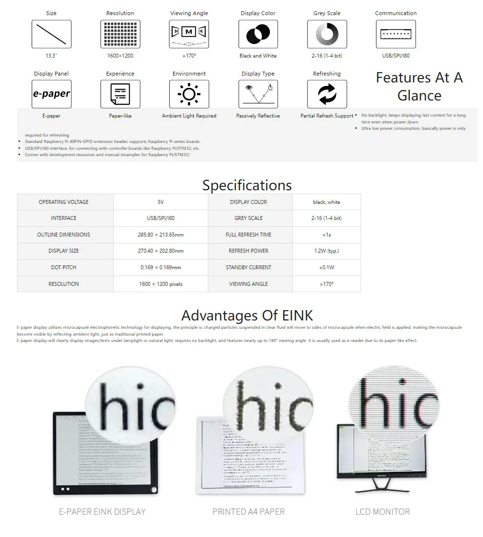 Ideal para lector electrónico, monitor eink, instrumentos industriales...