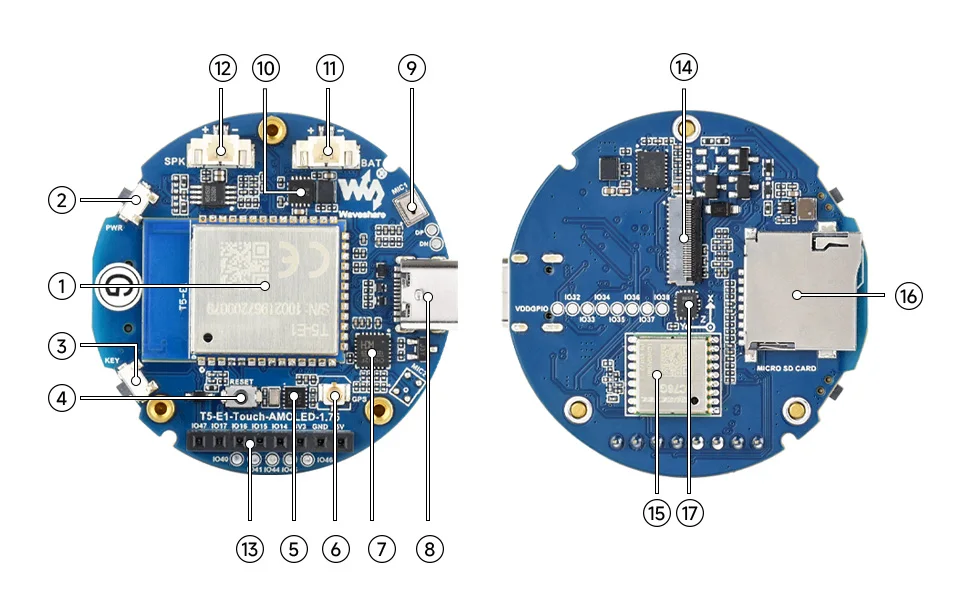 Módulo de posicionamiento GPS (solo incluido en la versión T5-E1-Touch-AMOLED-1.75-G)