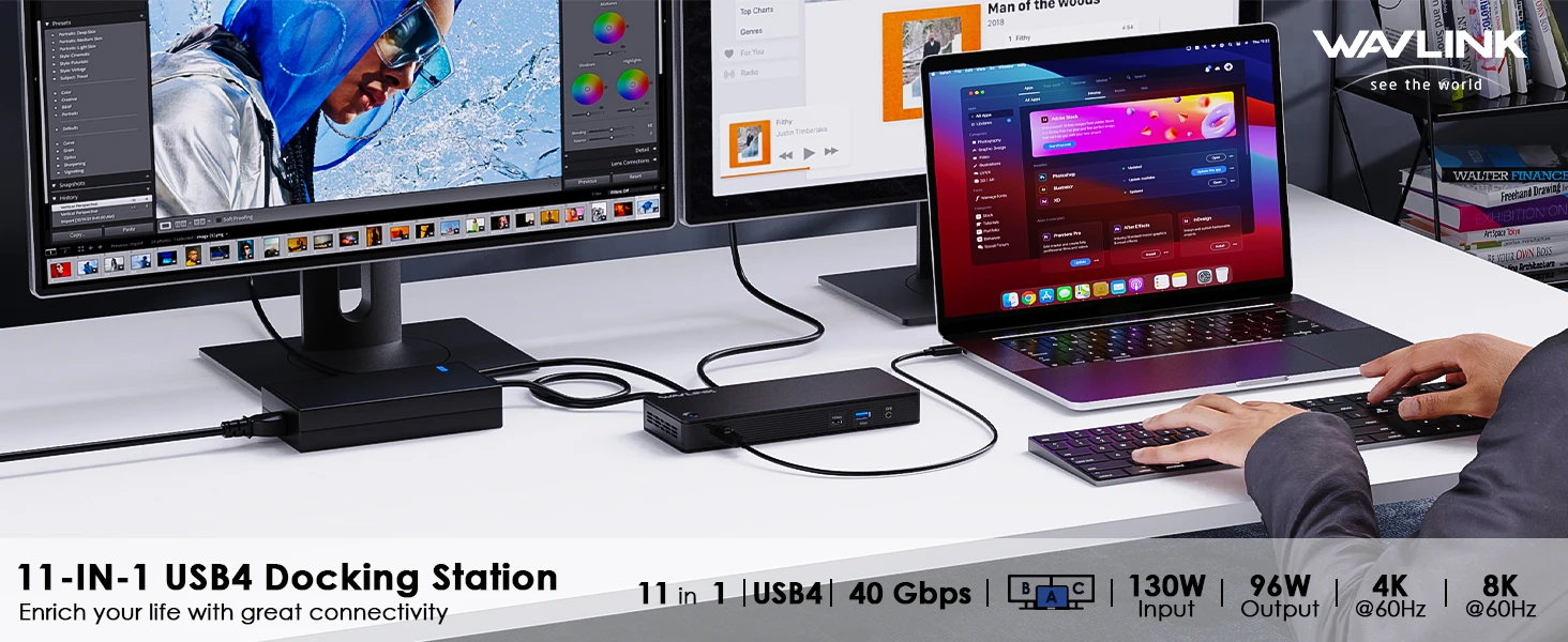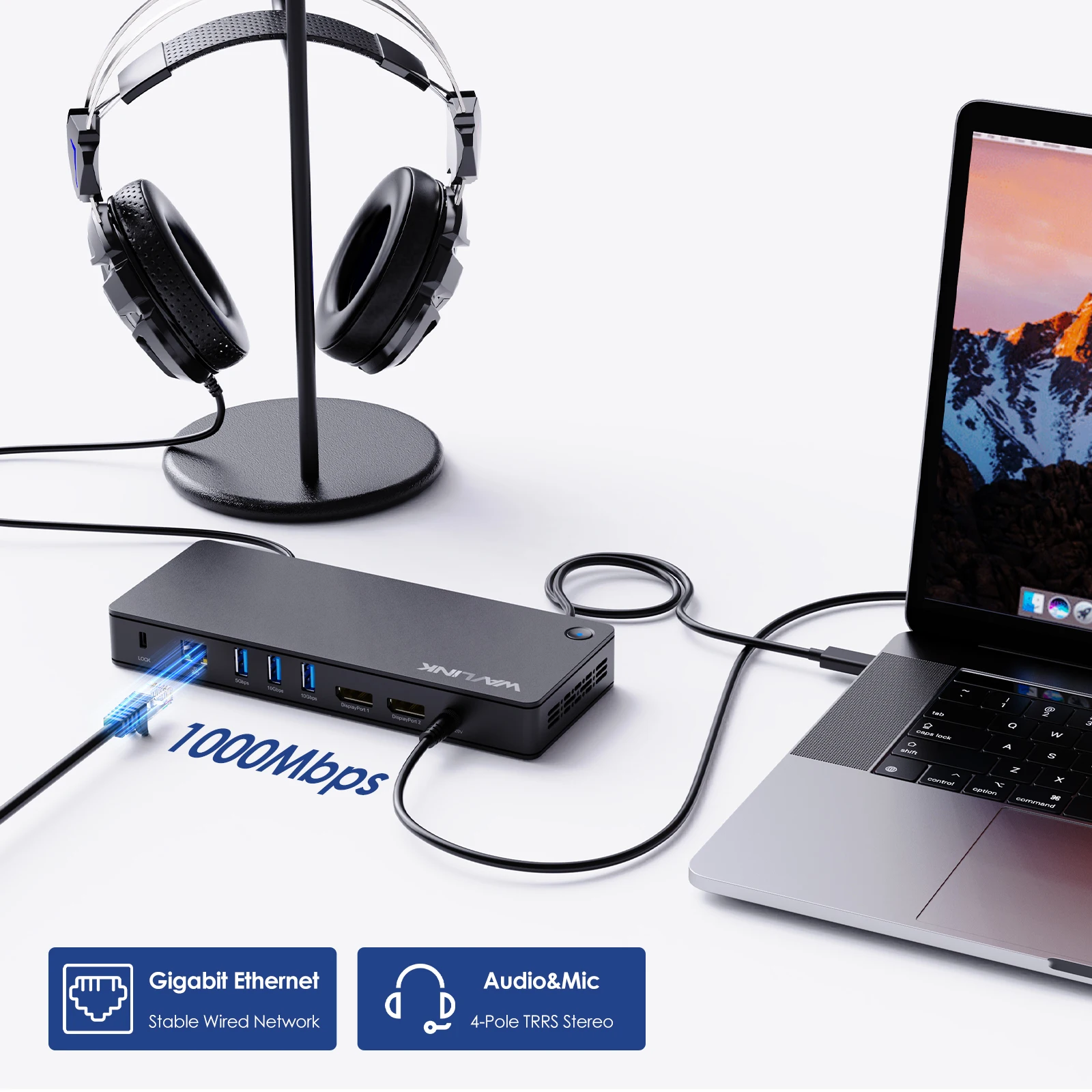 Comprar WAVLINK 11 en 1 USB 4 estación de acoplamiento para computadora portátil pantalla Dual 4K 40Gbps USB-C Dock 96W PD Gigabit RJ45 Plug & Play en Windows/Mac OS
