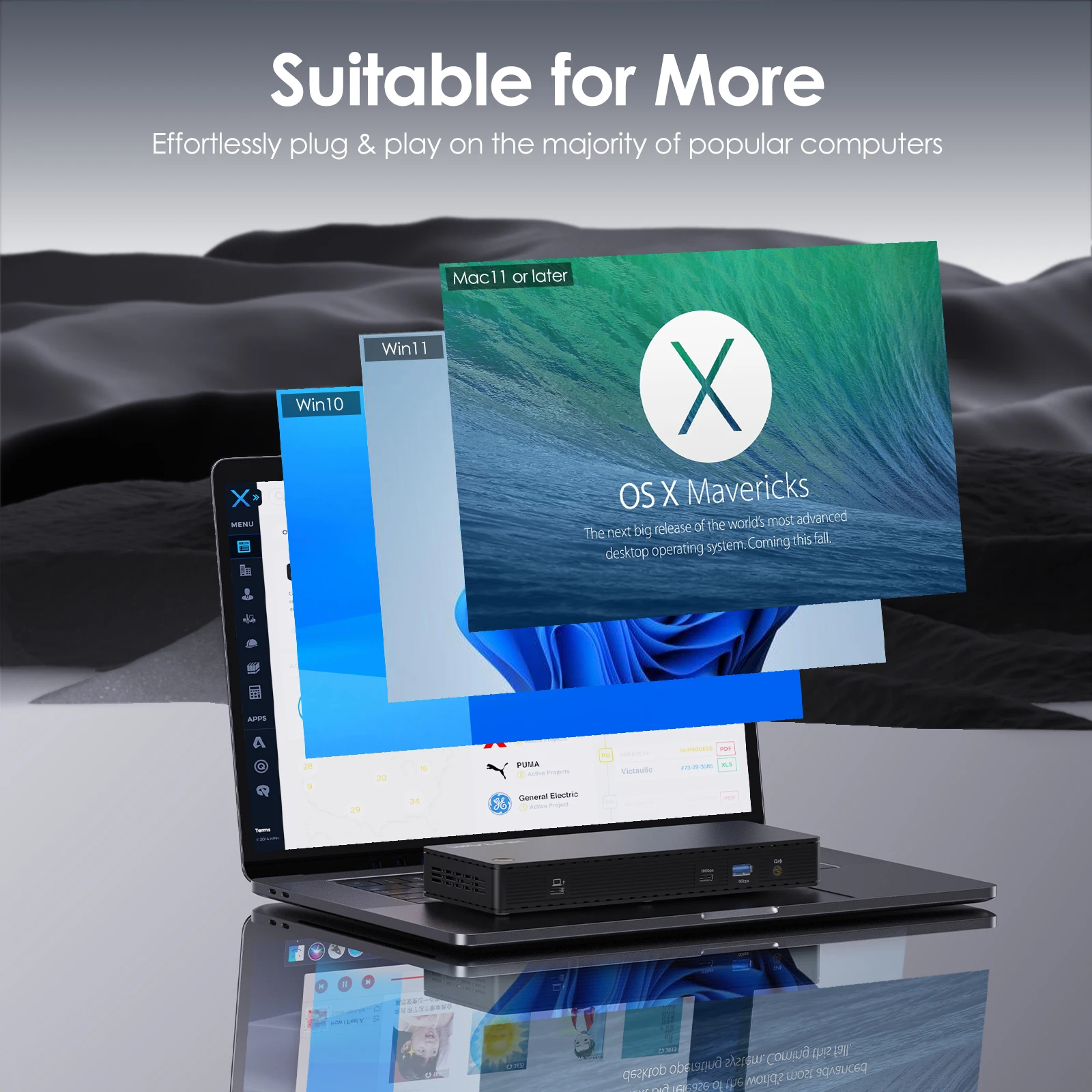 -Para más portátiles USB-C sin USB4/Thunderbolt 3/Thunderbolt4, el rendimiento será limitado.Algunas computadoras portátiles con puerto Thunderbolt 3 pueden admitir solo un monitor único (el otro monitor se vuelve negro), incluida la Mac basada en M1/2/3).Mientras que las computadoras portátiles y Mac basadas en m1/m2 pro/max con puerto Thunderbolt 4 pueden admitir monitores duales 4K@60Hz a través de nuestro dispositivo.