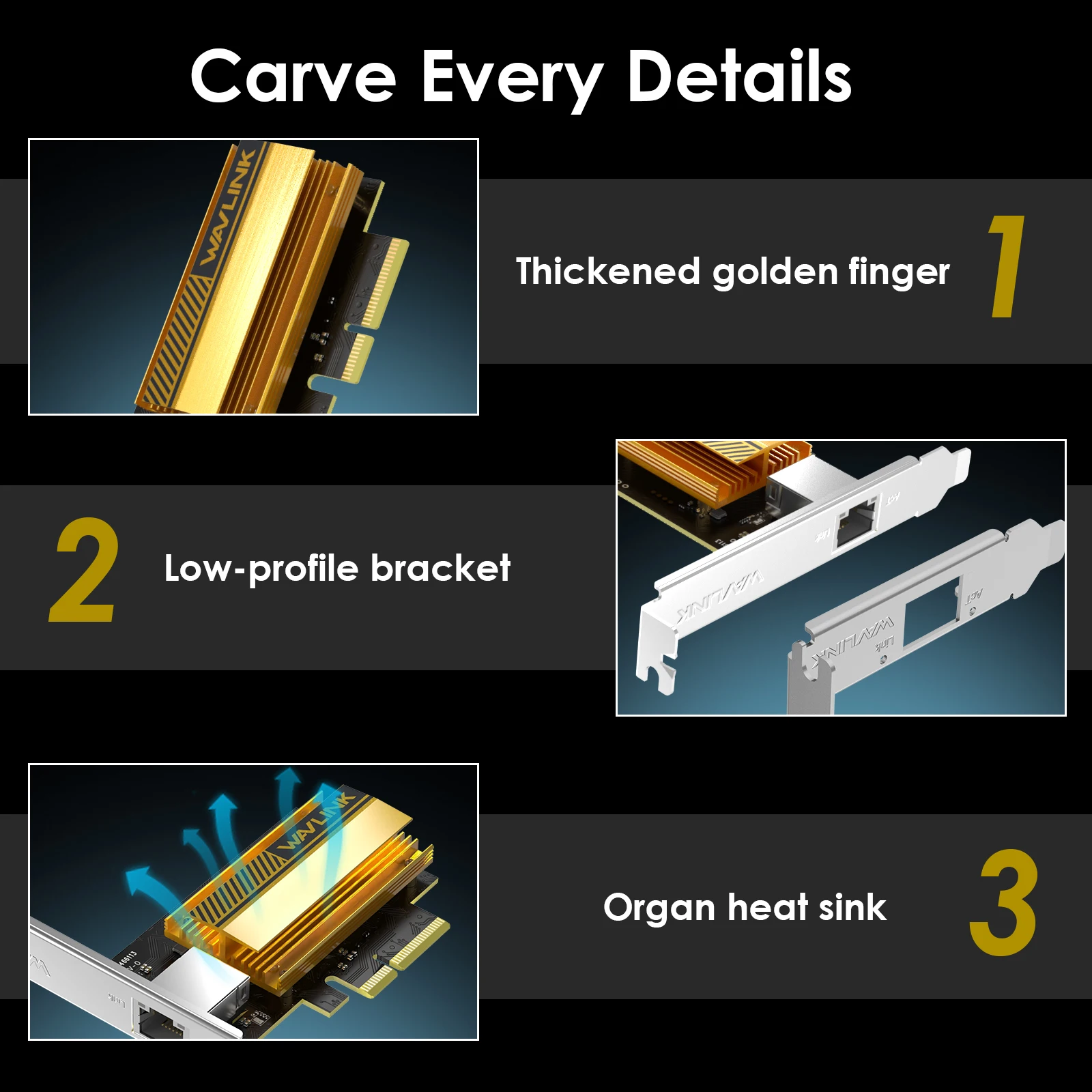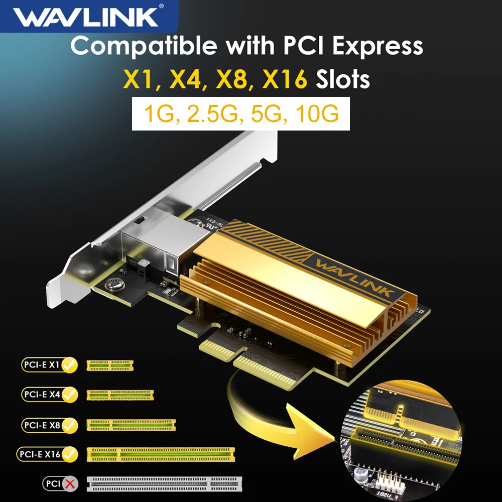 Comprar WAVLINK 1G/2,5G/5G/10G PCI Express Ethernet adaptador 10000/5000/2500/1000/100/10Mbps Base-T tarjeta de red PCIe para ventana 11 Linux