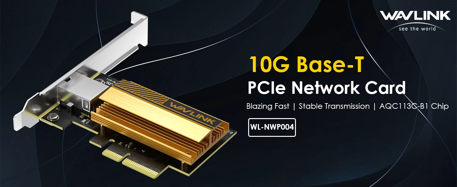 Tarjeta de red WAVLINK 10G Base-T PCIe, adaptador Ethernet PCI Express 10000/5000/2500Mbps con controlador AQC113, NIC 10G para Windows 11/10 y Linux con soporte de perfil bajo