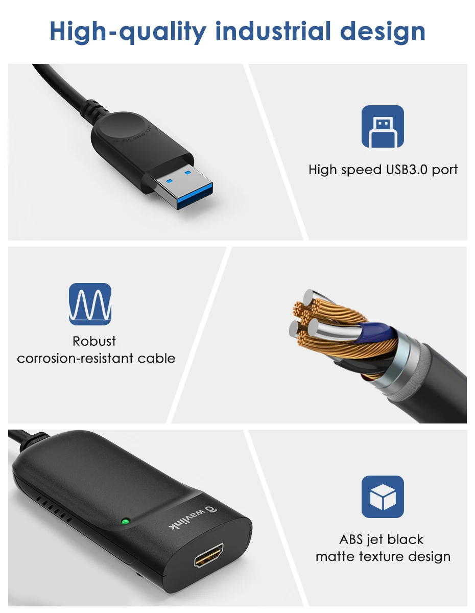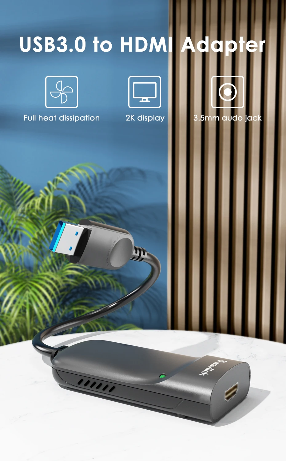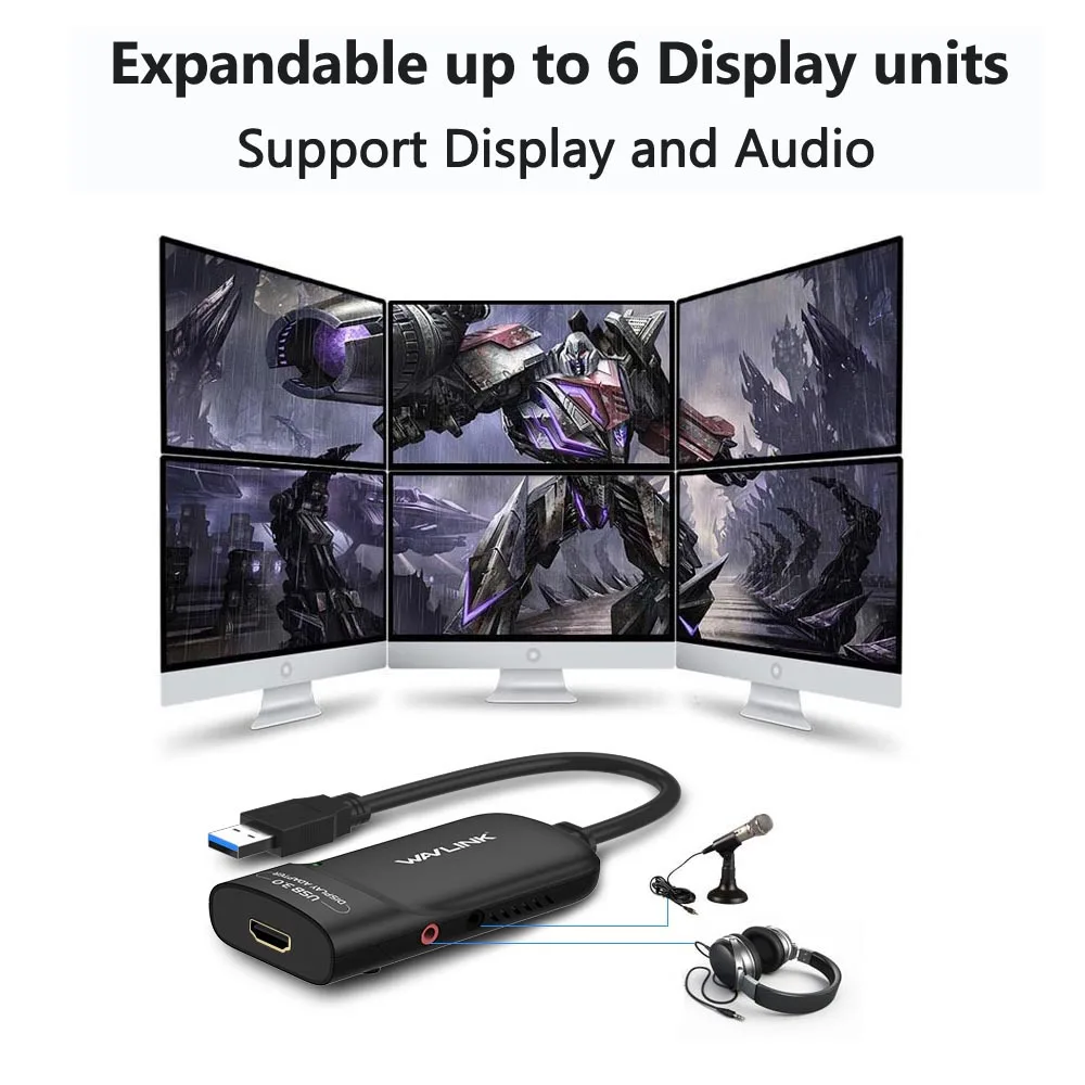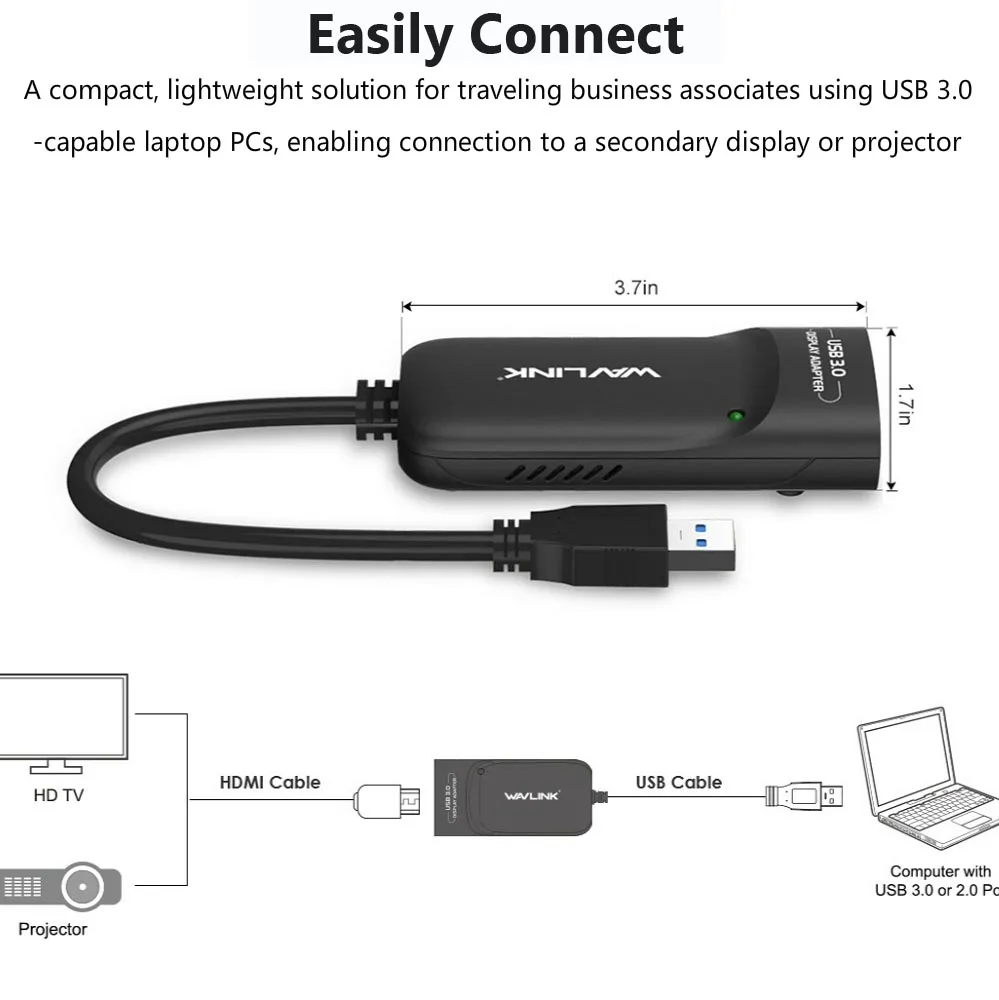 Comprar Wavlink-Adaptador de gráficos de vídeo Compatible con USB 3,0 a HDMI, adaptador de tarjeta de vídeo externa 2K, extendido/espejo para Windows Mac M1 M2